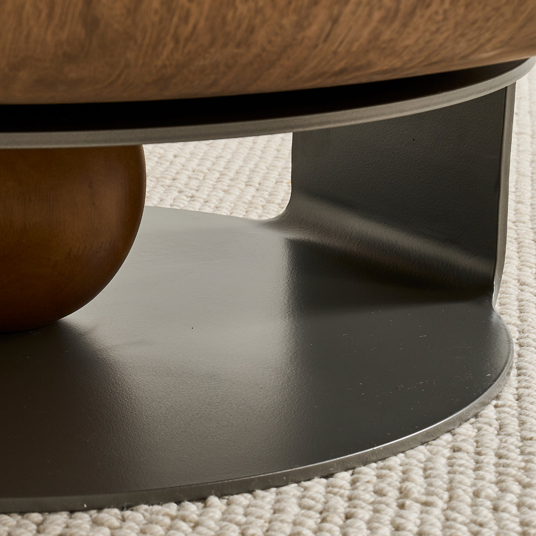 This gorgeous Amazon coffee table features a stained and varnished tabletop in a rich walnut color. The base is finished in a titanium color, showcasing distinctive and eye-catching details. The side table features a tempered glass top, beautifully set on a sturdy titanium base, creating a striking contrast in design and material.