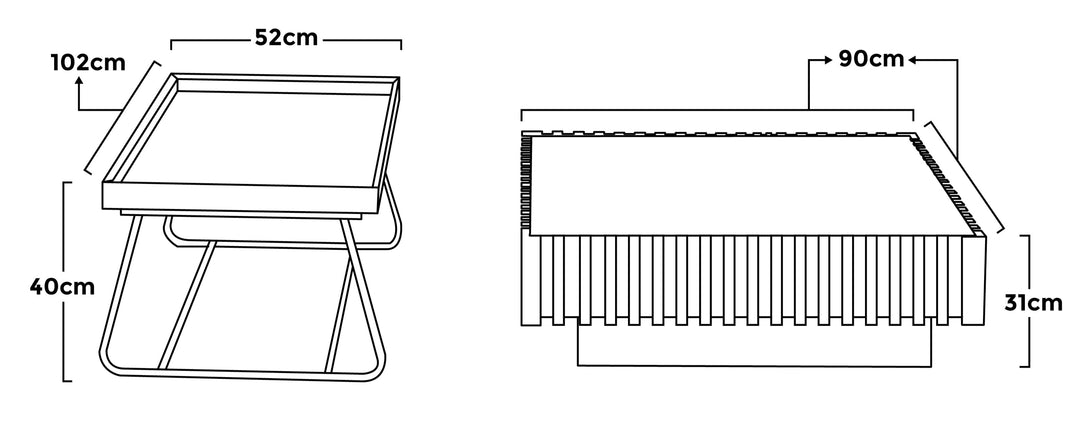 - Coffee table: L 90 x W 90 xH 31 cm