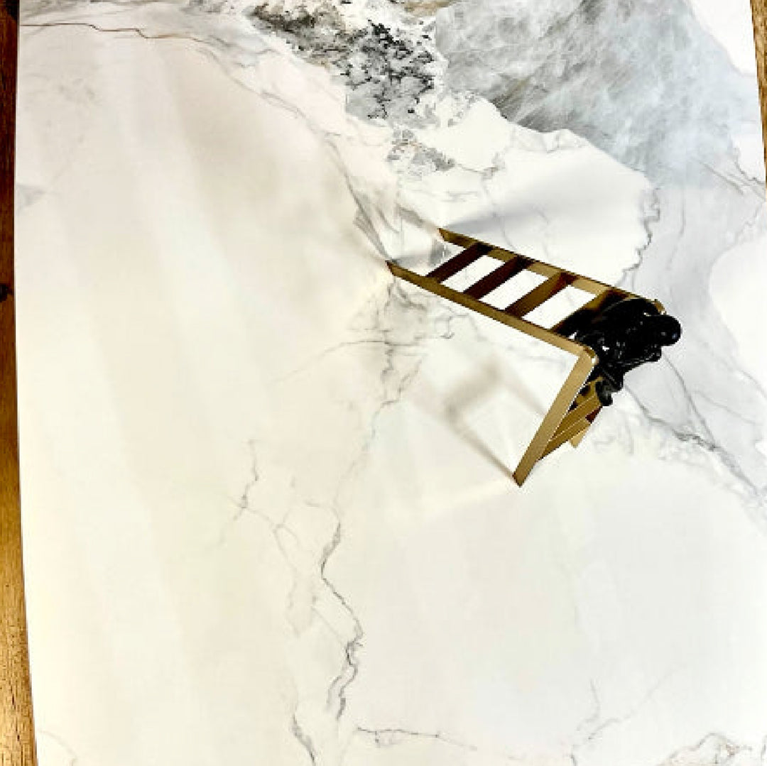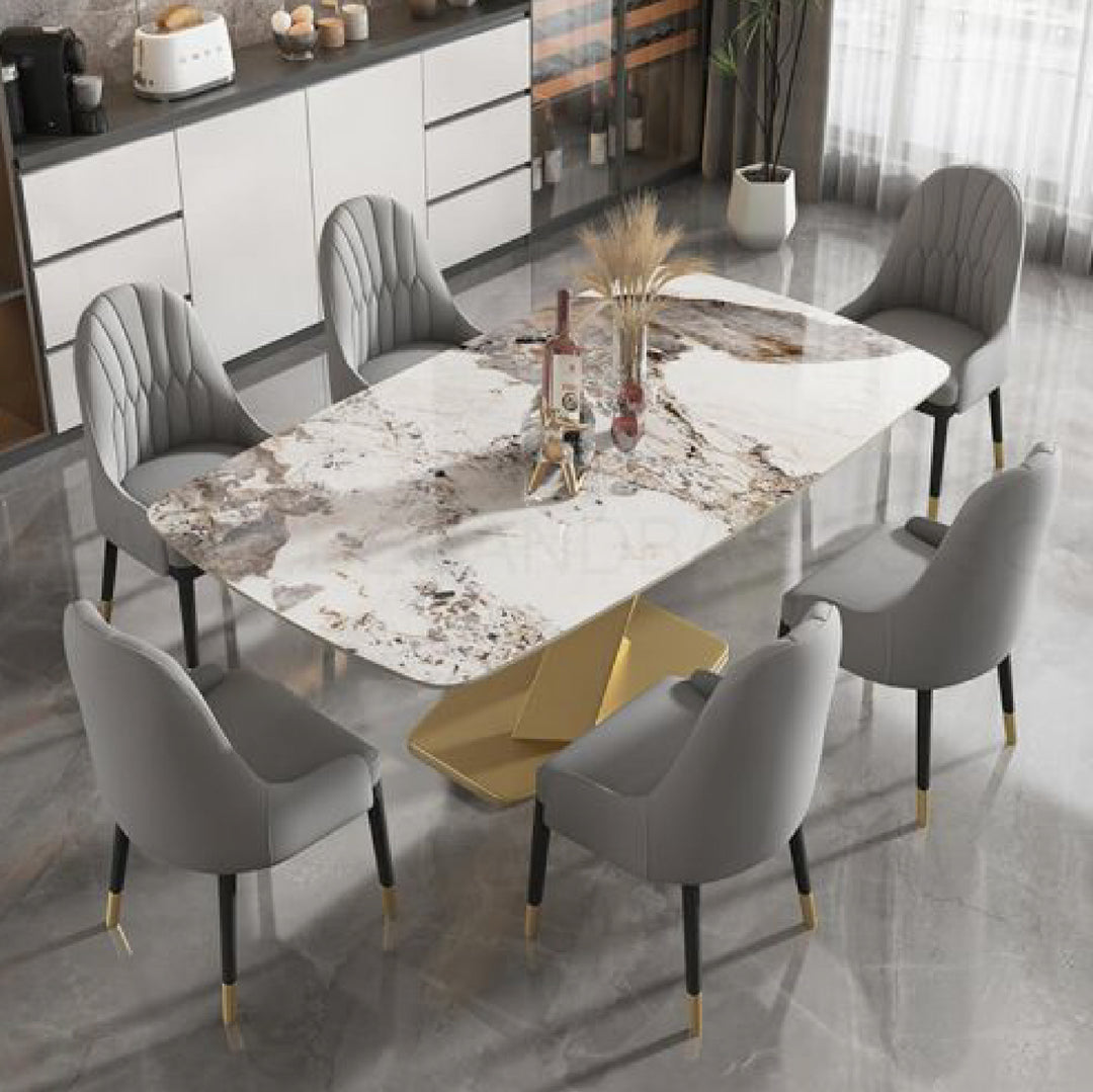 The Harvey Sintered Stone Dining Table is a sleek, durable, and low-maintenance dining table that is the perfect choice for smaller spaces. Expertly crafted with a sintered stone top, it features unique colour and patterns for a distinctive look. The heat-resistant sintered stone top is supported by a metal cross base with a powder-coated finish, creating a smooth, modern aesthetic.