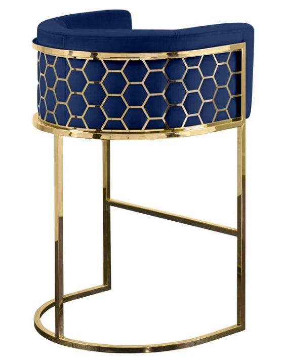 Honeycomb Bar Stool Blue Velvet Upholstery