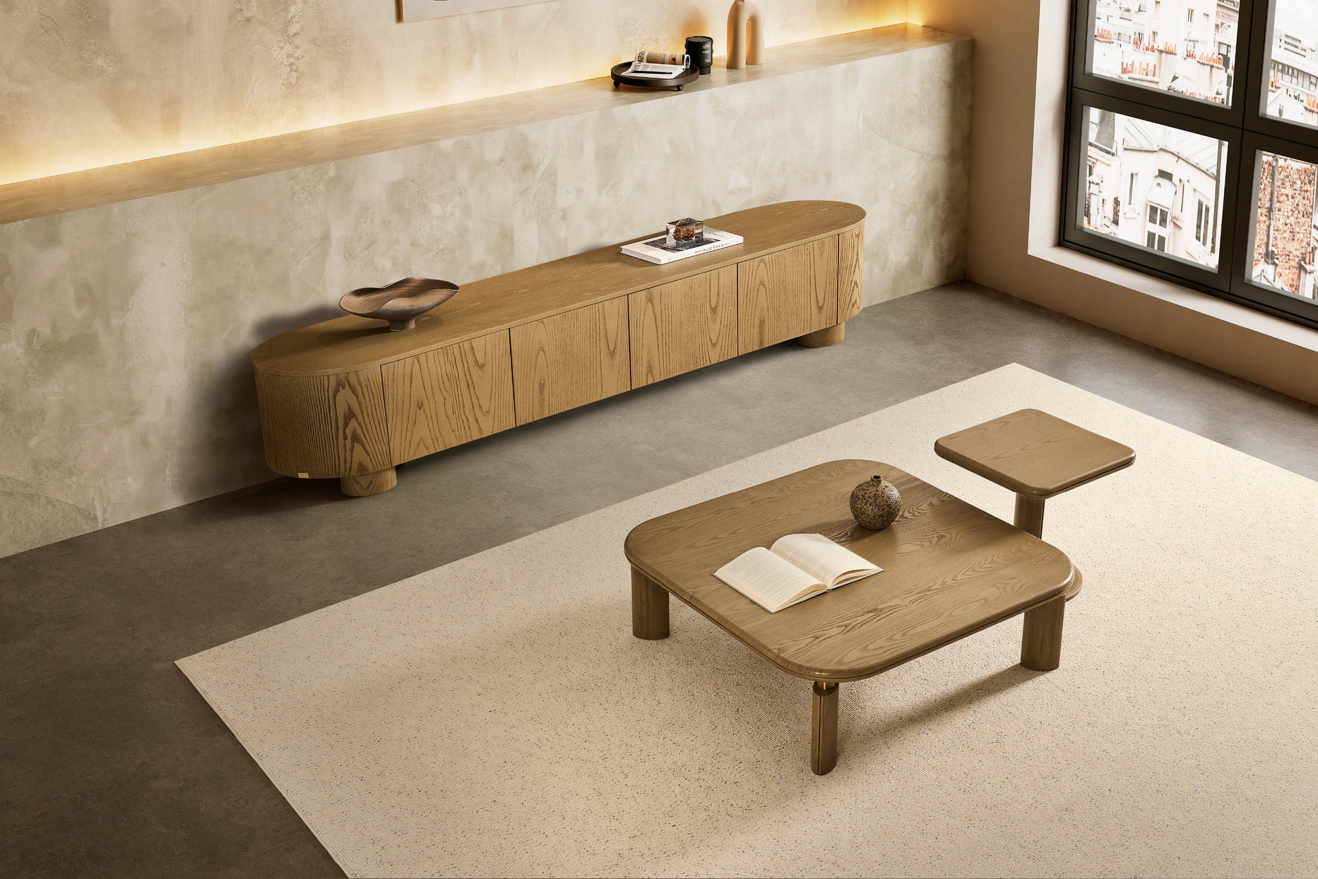 The low profile of this coffee table, paired with its light and warm hues, makes it an ideal fit for Japandi-style living rooms.