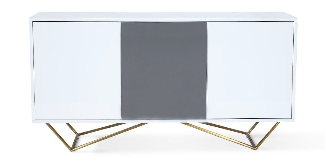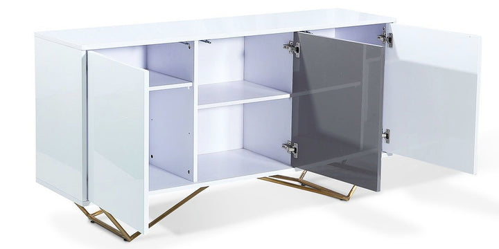 Lacy Buffet Sideboard – High Gloss White Storage Cabinet with Metal Base