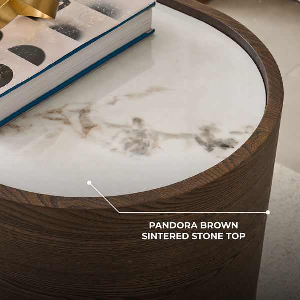 Pandora sintered stone top provides a surface that is easy to clean, heat-resistant, and remarkably sturdy for long-lasting beauty.