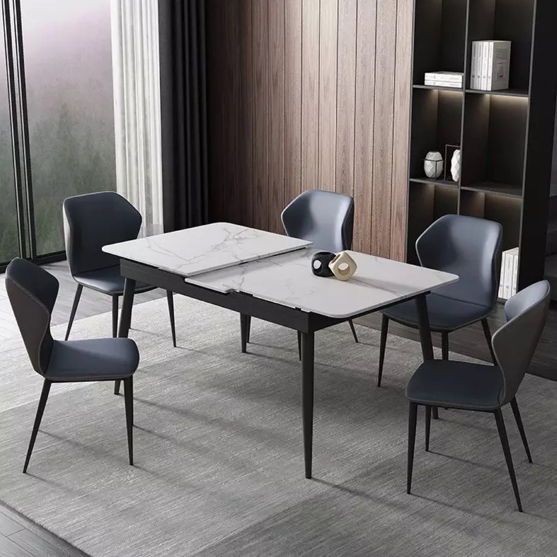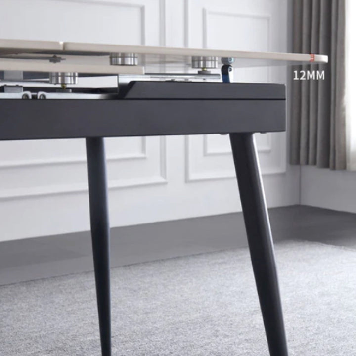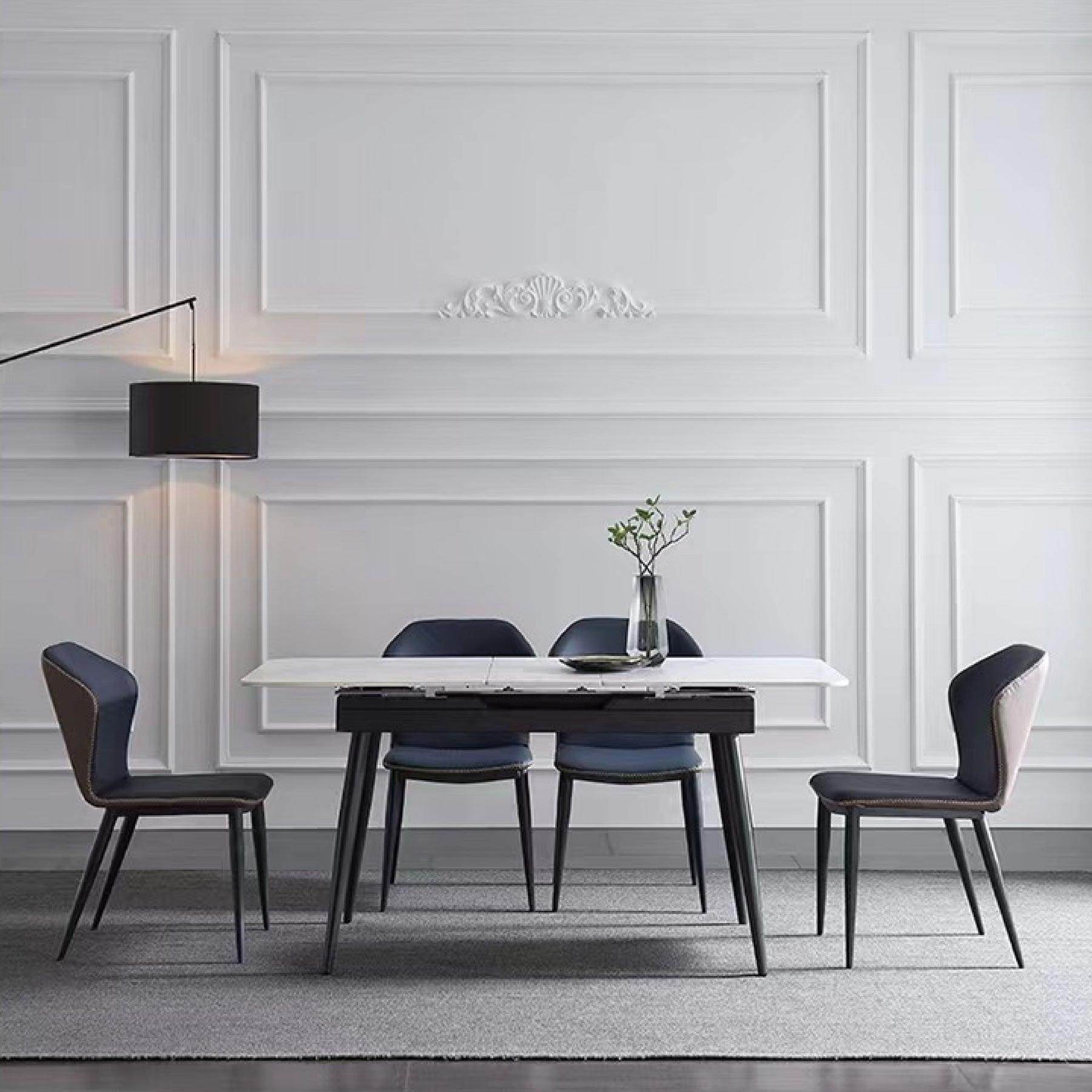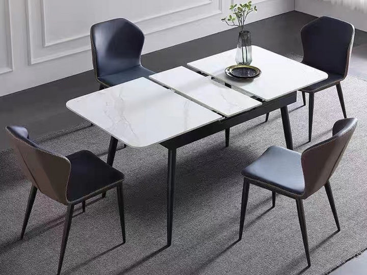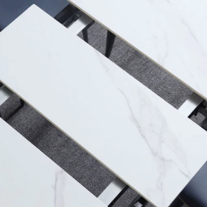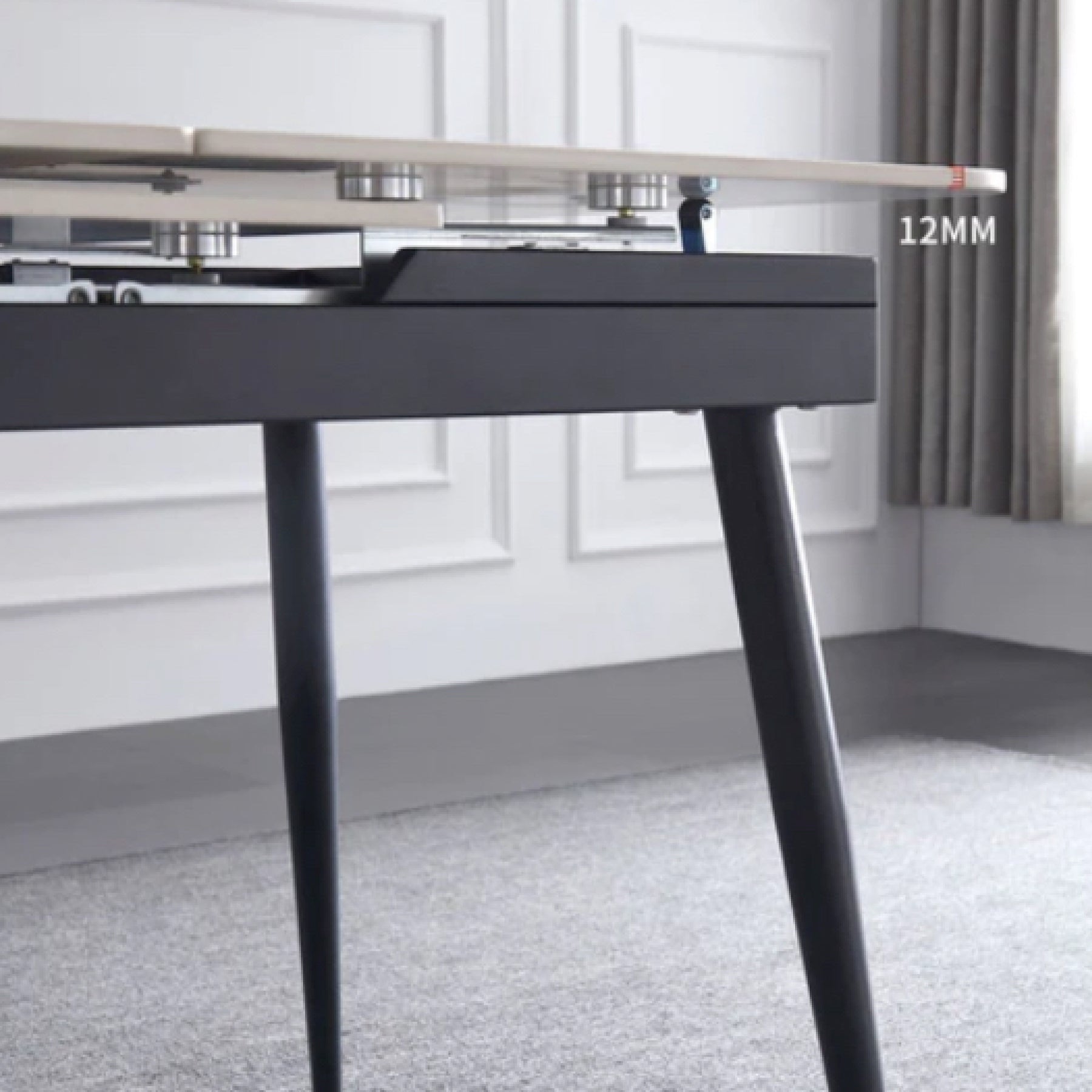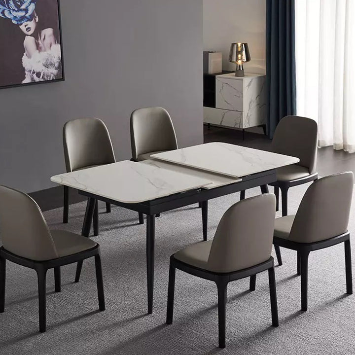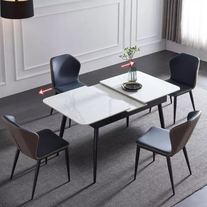 The Aria Extendable Dining Table is a great choice to maximize space. It adapts effortlessly to your needs, offering a compact setup for daily use and extra space when needed. Expertly designed with a sintered stone top, each piece features unique color and pattern variations. The heat-resistant top is reinforced with metal frame legs for a smooth, contemporary finish.
