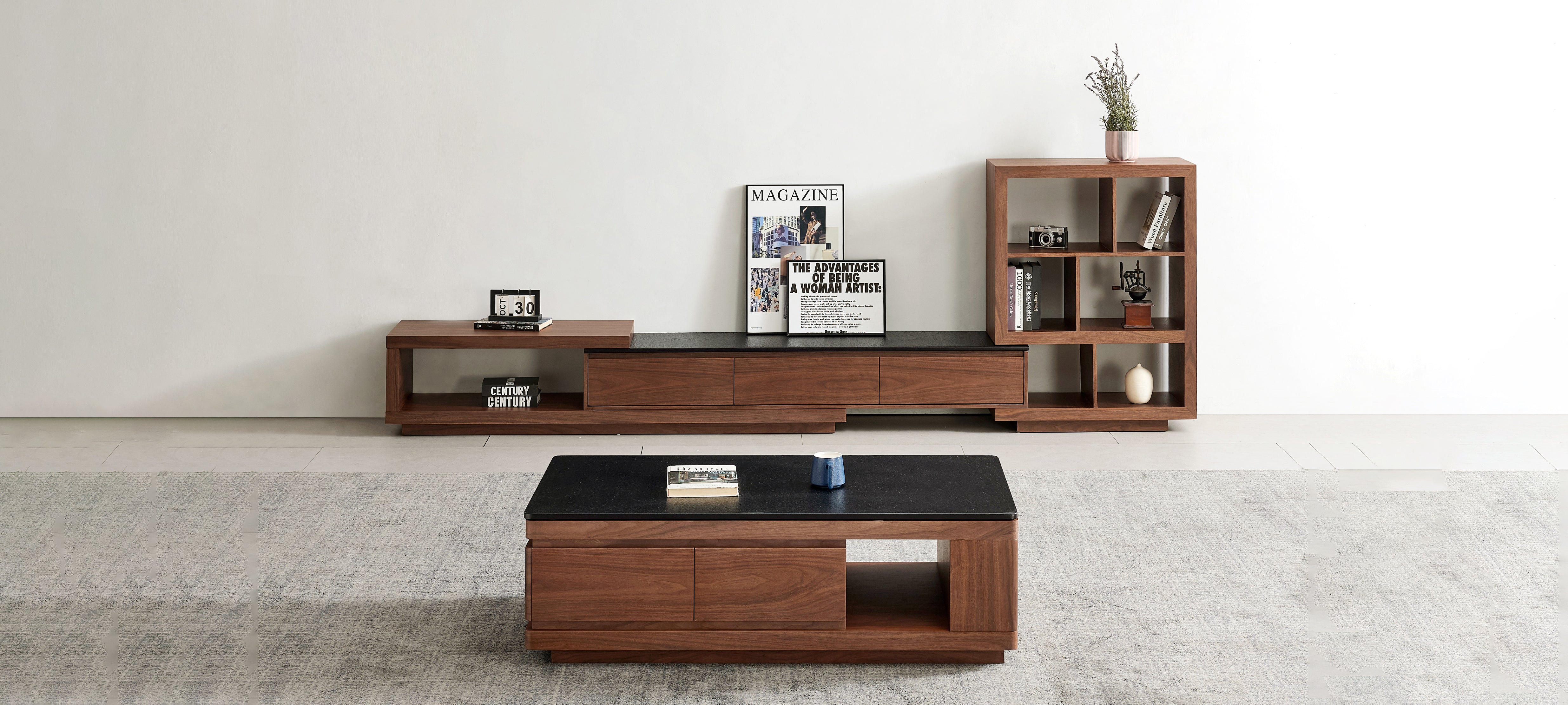 The Coco Collection by Marco Furniture brings a grounded vibe to your modern living room. Featuring a striking black burnt stone top paired with a rich walnut veneer frame, each piece adds depth and contrast to any space. Whether it’s the standout coffee table or the extendable TV unit, this range is made for both looks and everyday ease.