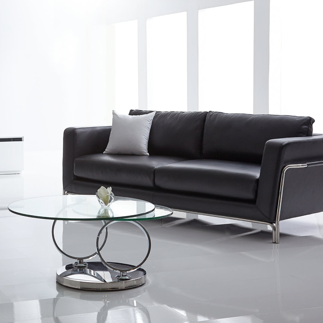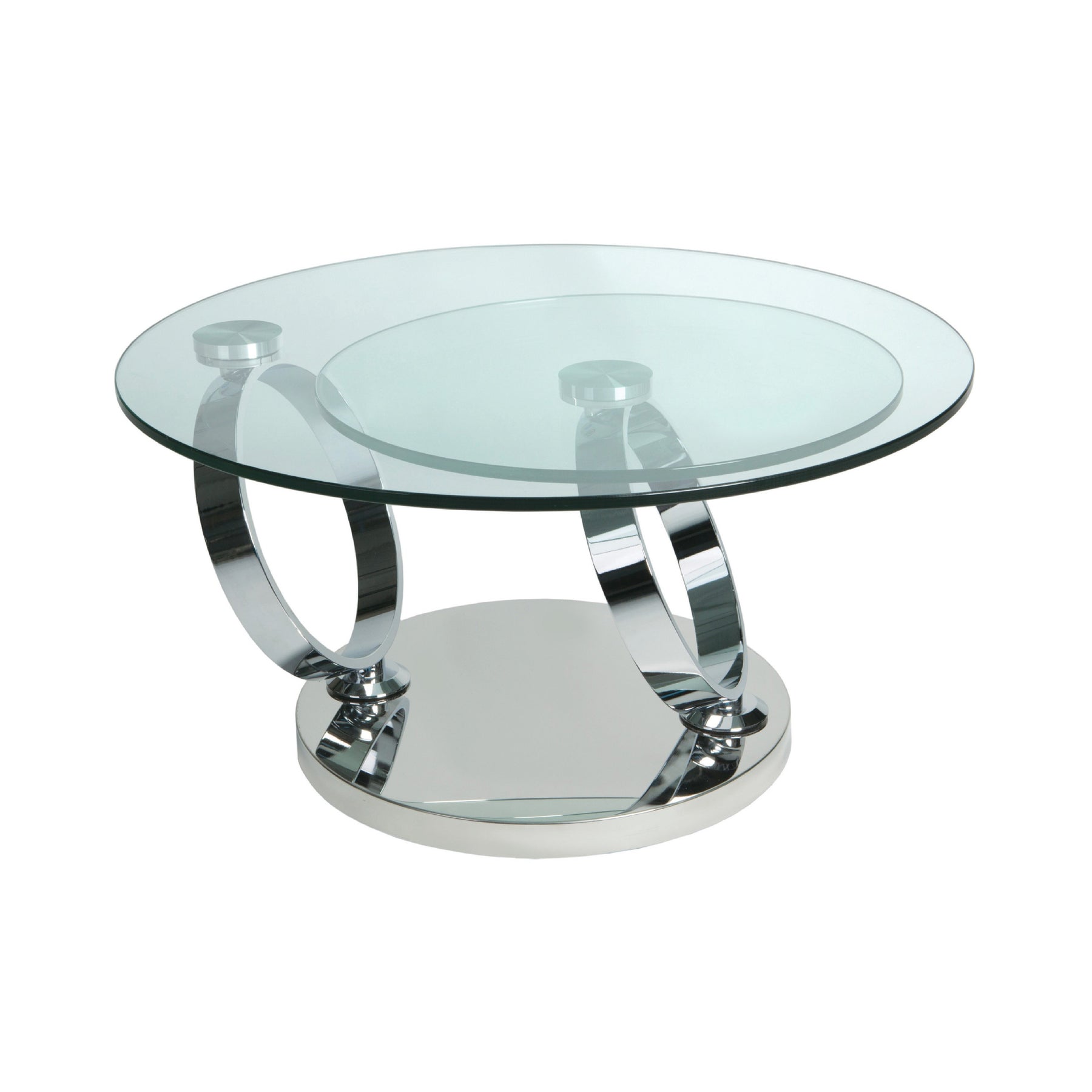 Avalanche Swivel Glass Coffee Table with Tempered Glass Top and Stainless Steel Base
