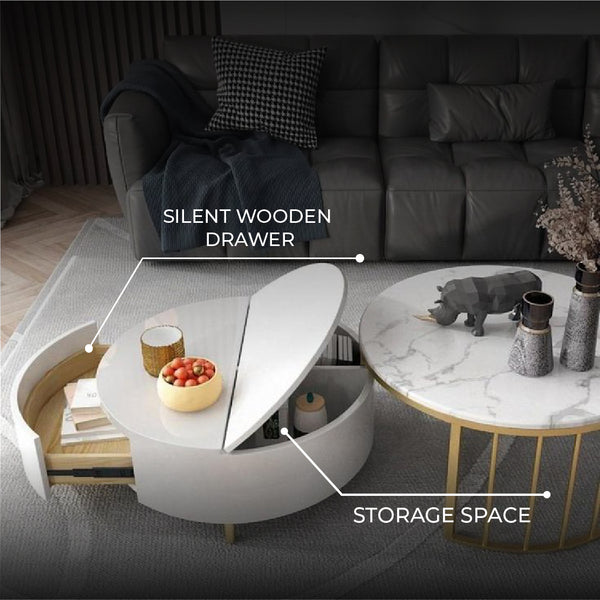 Its heat-resistant and scratch-resistant marble top ensures long-lasting beauty, while the easy-to-clean finish makes maintenance effortless.