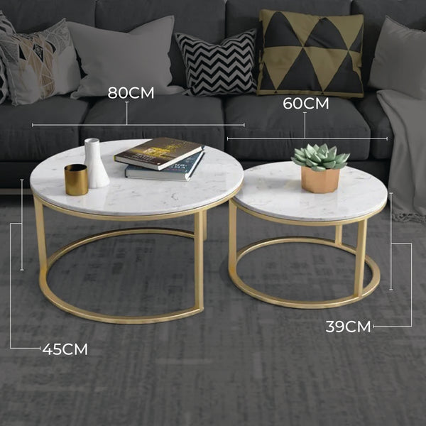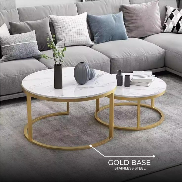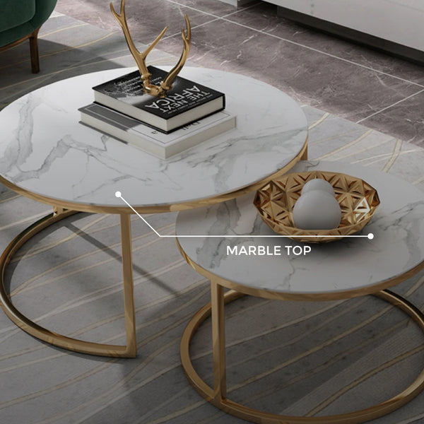 Proto Nesting Coffee Table with Marble Top and Stainless Steel Gold Base