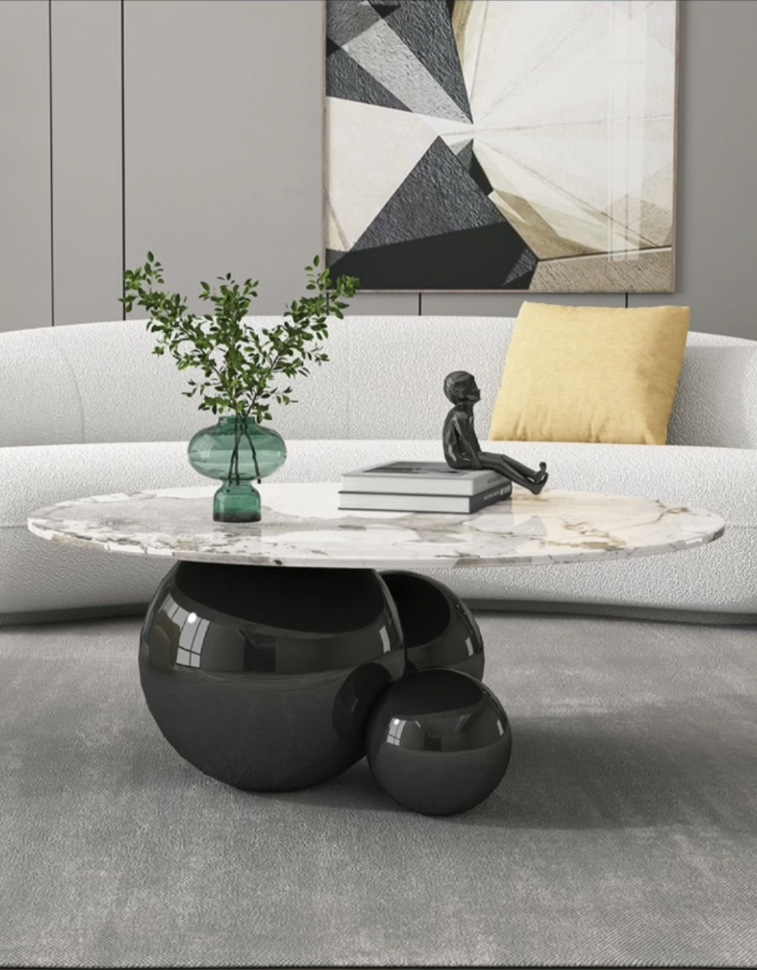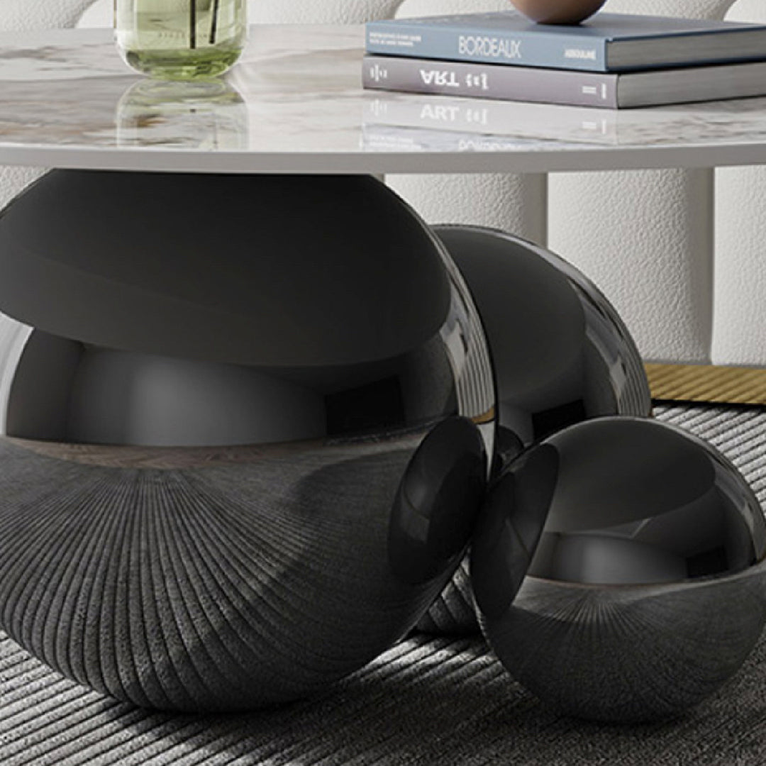 Spigola Round Coffee Table in Black with Sintered Stone Top and Stainless Steel Base