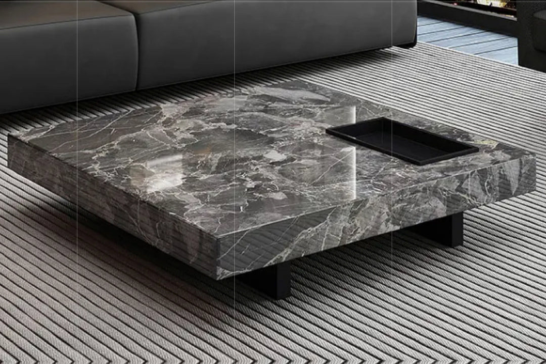Venezia Marble Coffee Table with Natural Marble Top and Stainless Steel Base