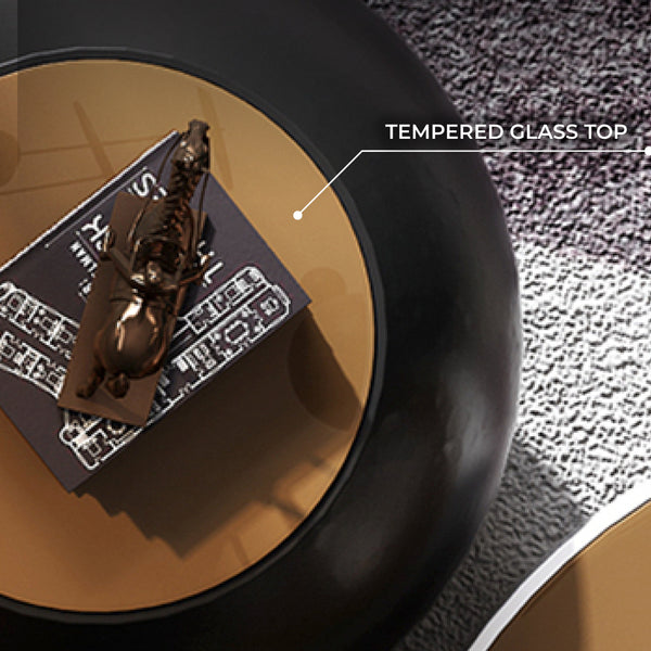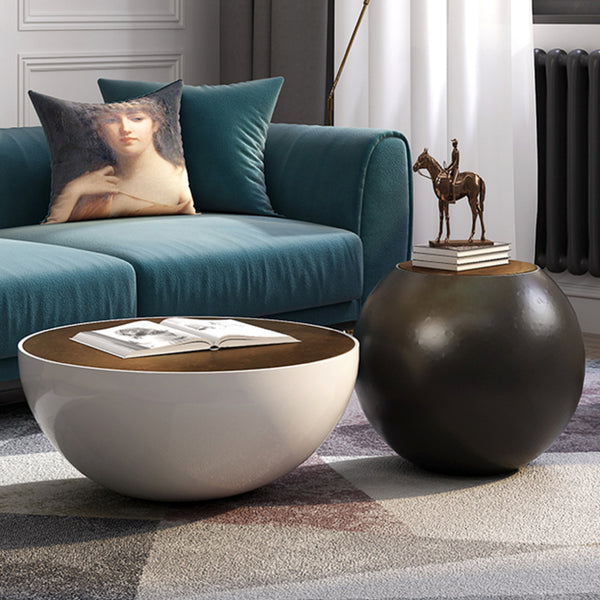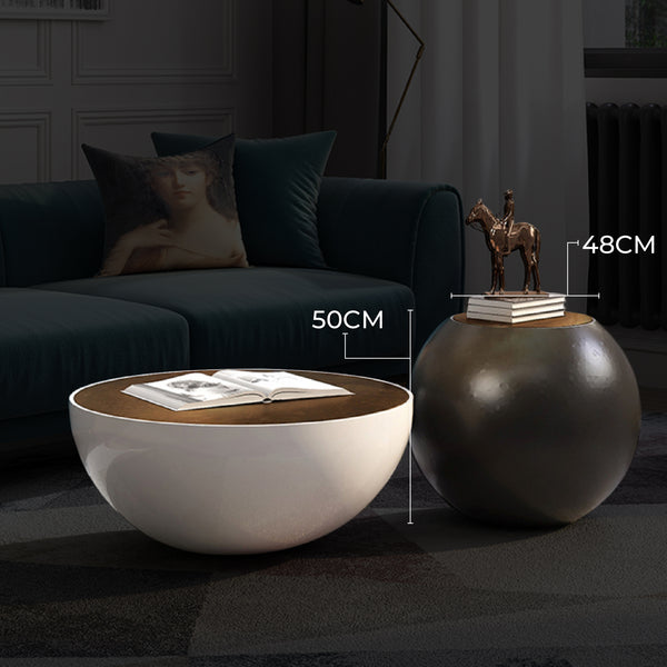 The Oyster Side Table features a distinctive spherical design with modern styling. The tempered glass tabletop offers this table a graceful surface for showcasing your favorite decor pieces. Constructed from high-quality MDF wood with a high-gloss finish, this corner table adds a warm and natural feel to your living room.