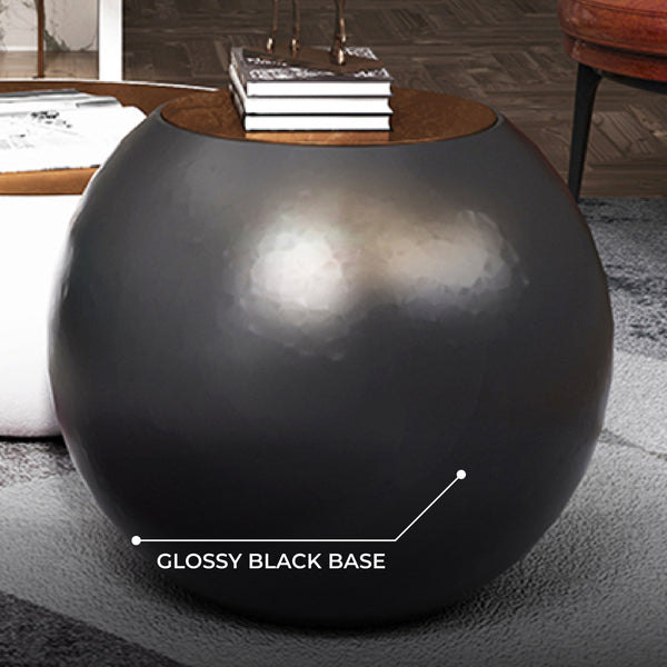 The glossy black spherical base creates a striking focal point with its smooth and reflective finish.