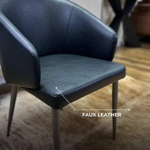 Leo Faux Leather Dining Chair with Curved Backrest & Steel Legs