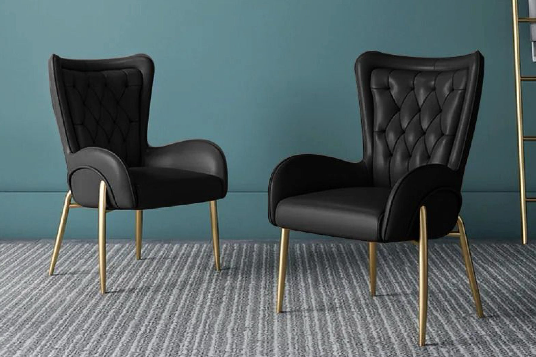 The Lorenza Dining Chair comes with graceful curves and luxurious finishes. These dining chairs are available in high-quality materials including faux leather and premium velvet upholstery. This dining chair comes with durable stainless steeel legs with a brush gold finish which gives it a modern appeal. This dining chair with high-back and button-tufted details is a perfect fit for modern dining spaces.