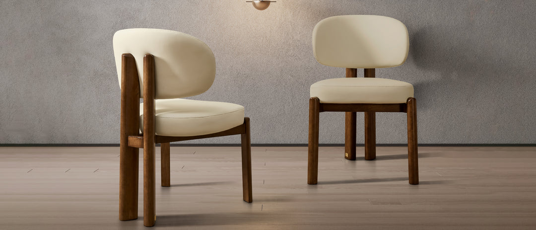 Material choice makes all the difference. Velvet dining chairs add texture and a touch of softness, while curved back leather dining chairs create a sculptural feature around your dining table. Whether paired with walnut dining tables or styled on their own, these chairs are crafted to create inviting spaces for everyday dining and special occasions. Bar stools in matching materials allow for consistency across your kitchen and dining nooks, creating a flow between different living spaces. Browse our range of dining chairs for sale and discover styles that balance comfort, design, and versatility.