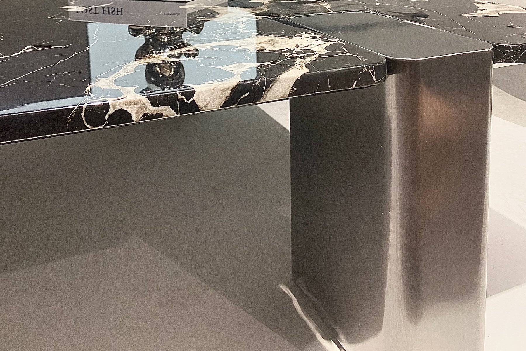 The Lapis Black Rose Marble Coffee Table features a stunning black rose marble top paired with a sleek stainless steel base, providing a perfect display for contemporary living room decor. Complete the look with the matching side table, available at an additional charge.