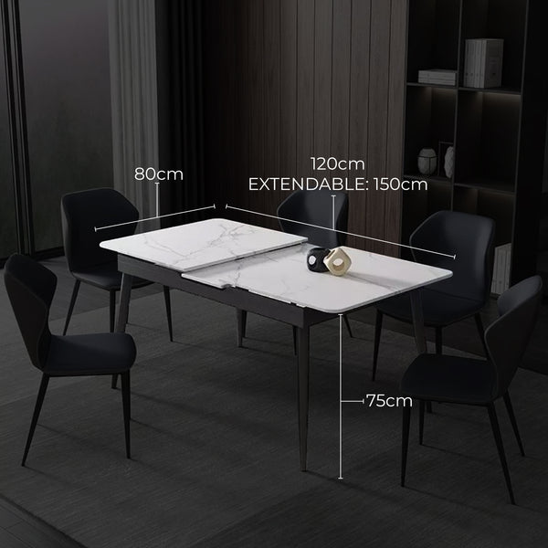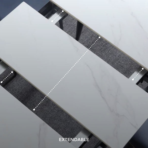The Aria Extendable Dining Table is a great choice to maximize space. It adapts effortlessly to your needs, offering a compact setup for daily use and extra space when needed. Expertly designed with a sintered stone top, each piece features unique color and pattern variations. The heat-resistant top is reinforced with metal frame legs for a smooth, contemporary finish.