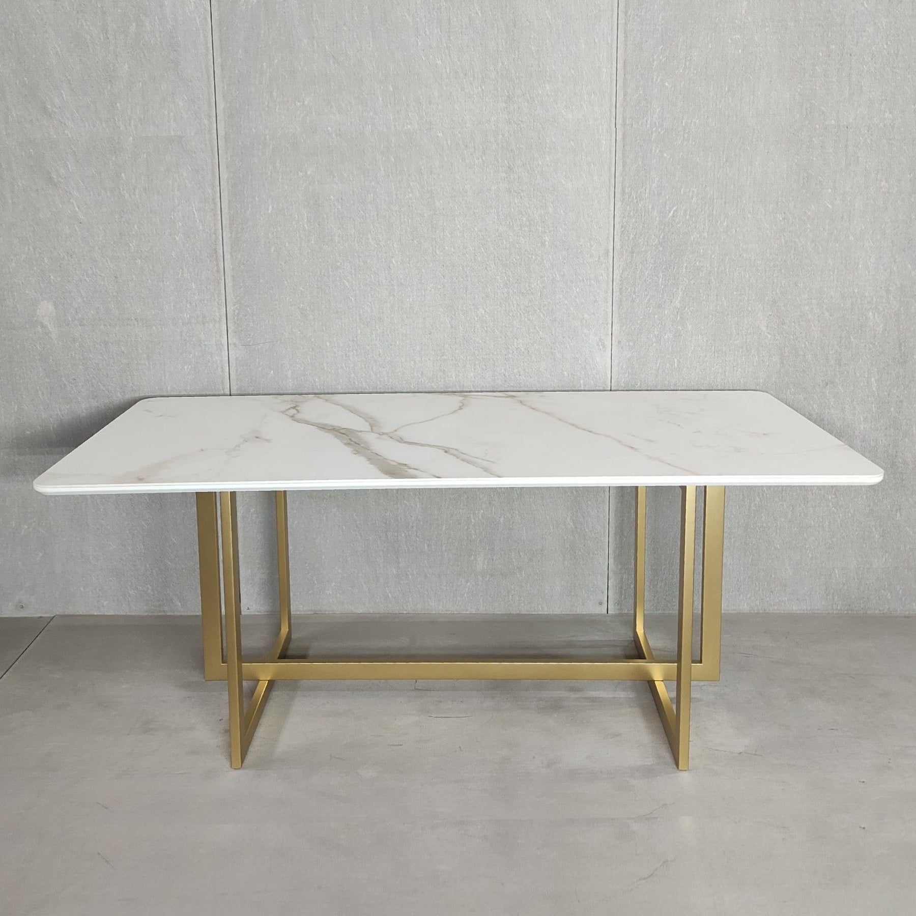 Eden Marble Top Dining Table - Champagne Gold Stainless Steel Frame