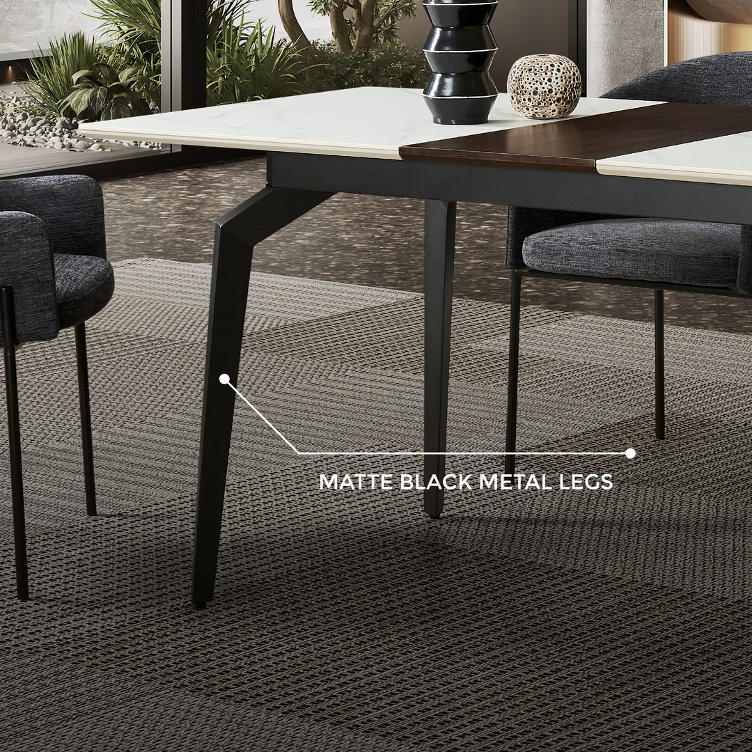 Elora Spanish Ceramic Top Extendable Dining Table - Matte Black Metal Legs