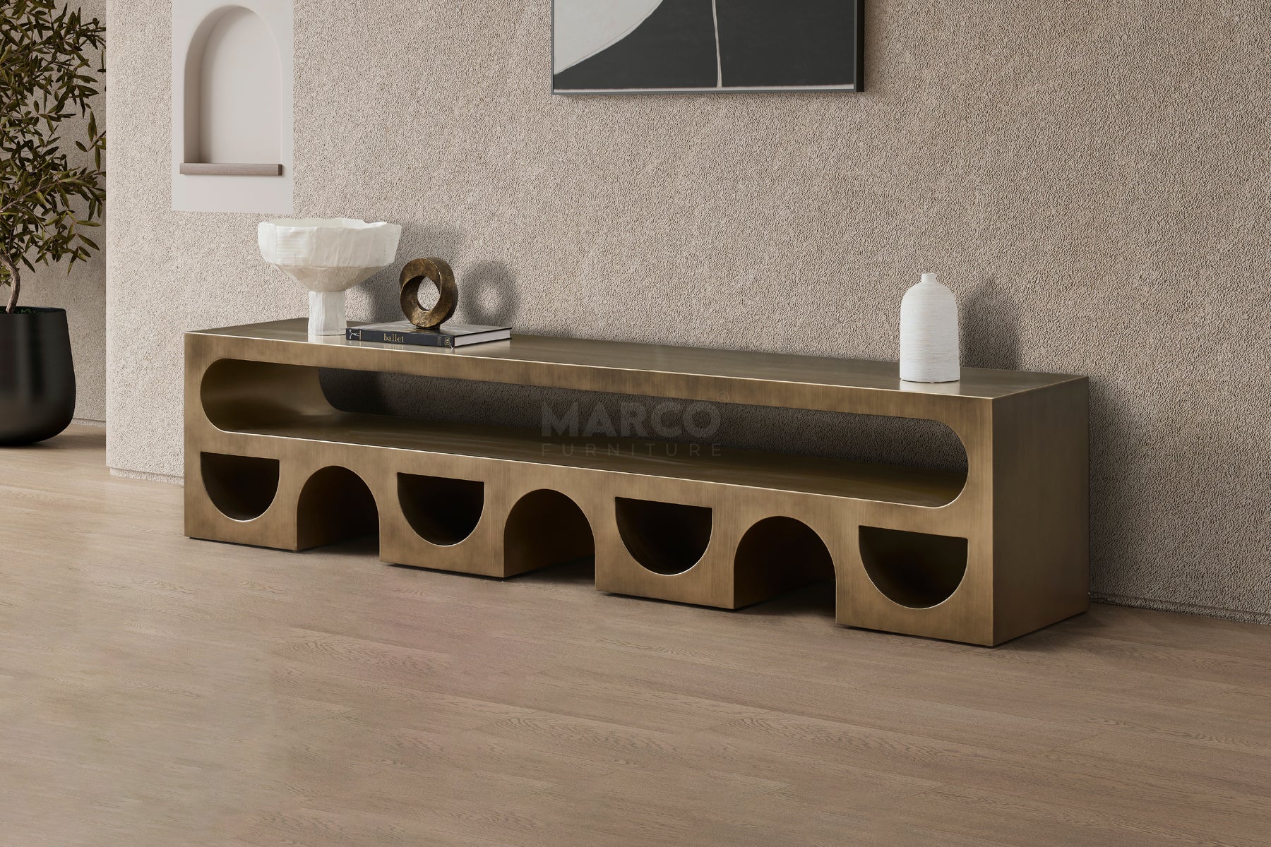 The Casper Extendable TV Unit offers modern design with versatility, making it a luxurious addition to contemporary living spaces. Finished in black oak veneer and natural walnut veneer, it features a natural look that complements any decor style. The three drawers of this entertainment unit provide ample storage space for your media devices.