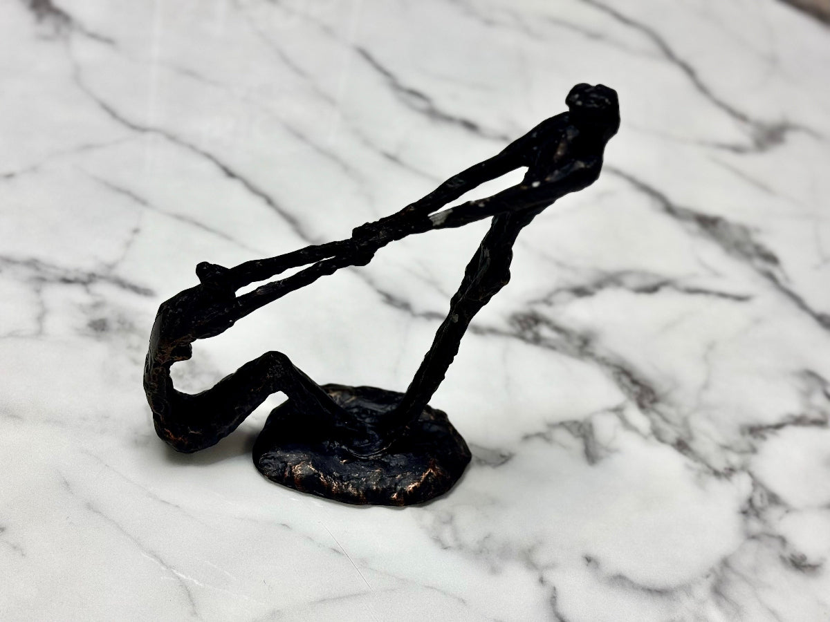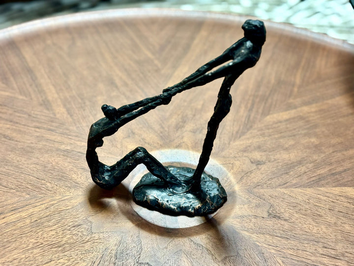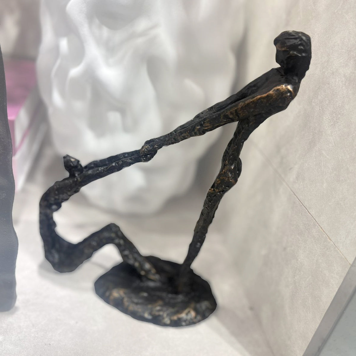The Helping Hands Couple Sculpture features two abstract figures in a pulling gesture, crafted with a textured black finished metal and bronze accents. This table decor piece is perfect for showcasing themes of unity and resilience. It adds an inspiring and artistic touch to desks, shelves, or display spaces.