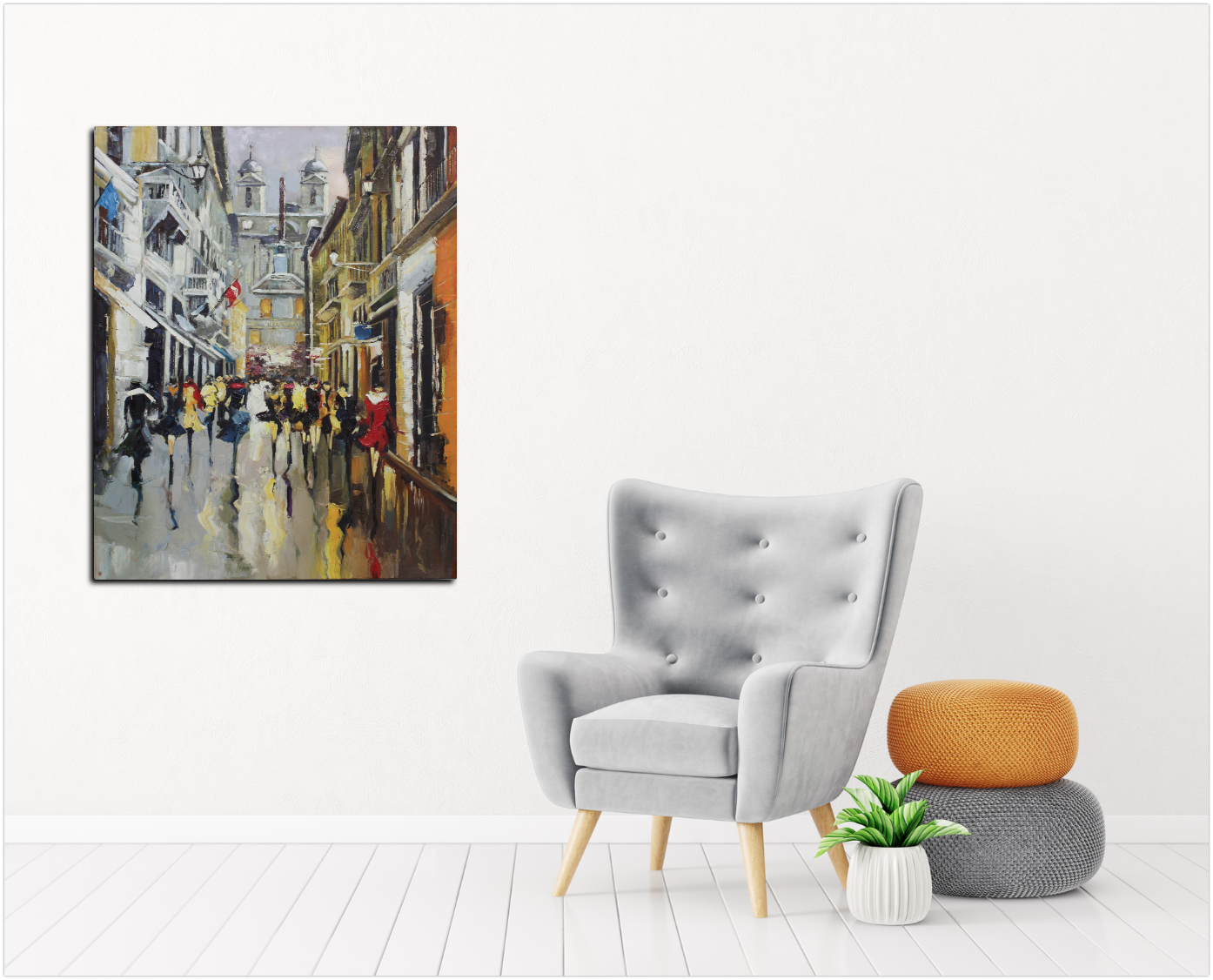 Mixture of street art & city landscape painting that completely displays the beauty of the secret hidden streets. This abstract represents a notion that lots of soul and stories are often found in the streets that no one knows.