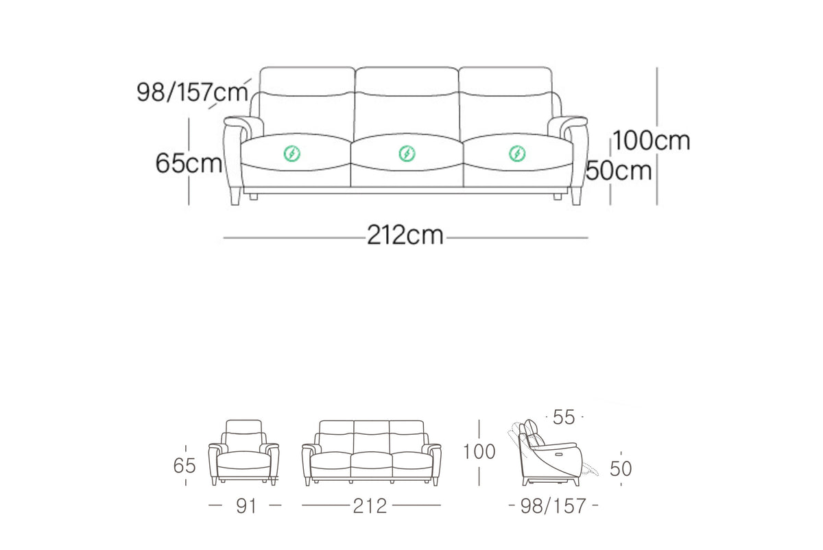Captiva Leather Recliner Lounge – Electric Reclining Sofa