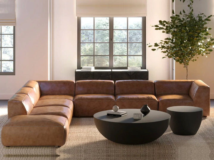 Craft your ideal seating arrangement with the Kent Leather Corner Lounge, where comfort meets modern design. Featuring spacious wide seats with deep seating and low backrests, this sofa offers a welcoming spot to unwind. Its modular design lets you mix and match with additional armless seats and an ottoman, allowing you to create the perfect layout for your space. Whether you're furnishing a spacious living room or designing a cozy corner, Kent Leather Lounge adapts to fit your needs.