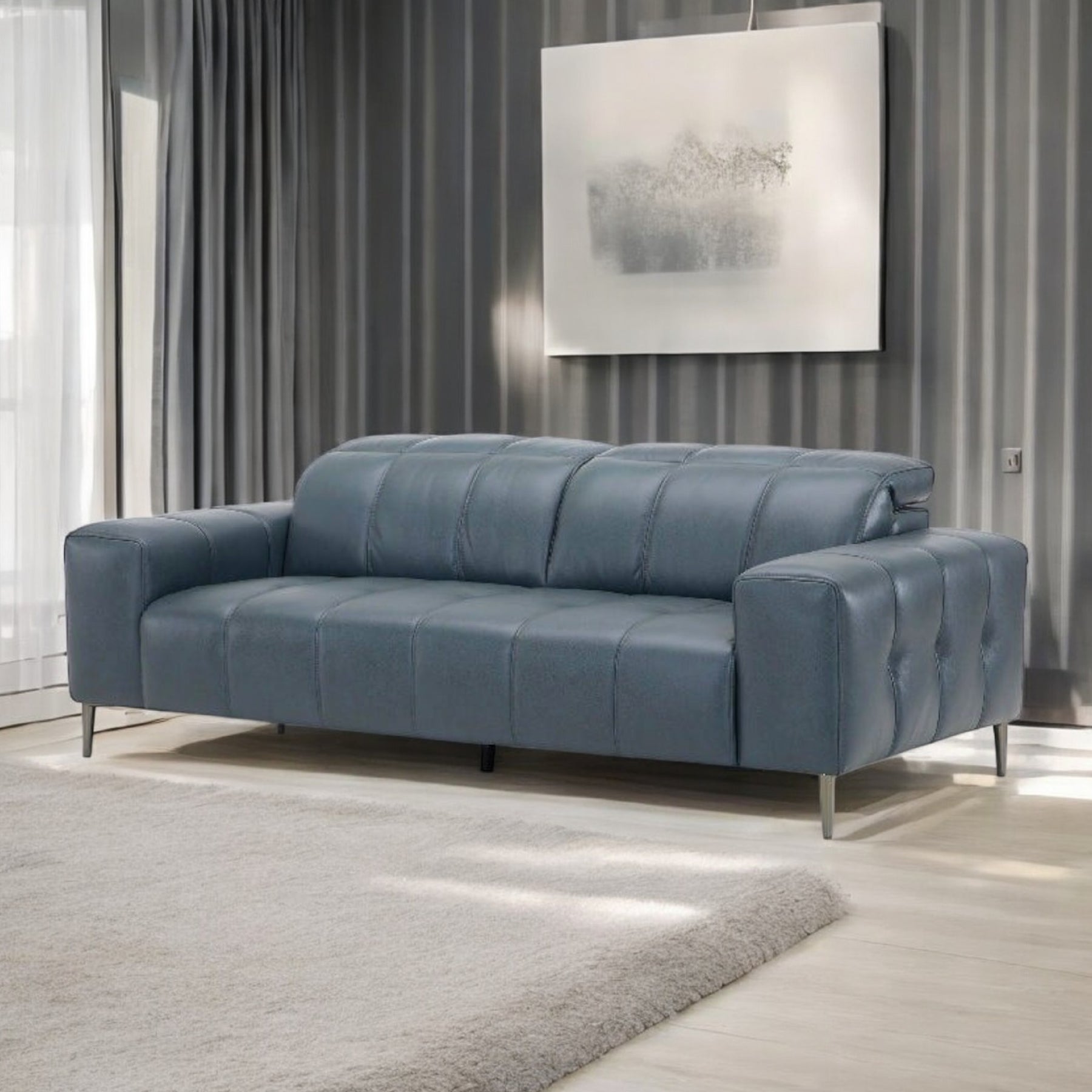 Bring comfort to your home with the Chelsea 2-Seater Leather Lounge, designed for modern Australian living. This piece features medium back support and refined linear tufting, ensuring both style and ergonomic comfort. Its manual adjustable headrests allow you to customize the neck support for optimal comfort and relaxation. Raised legs allow for easy cleaning underneath, making it as practical as it is beautiful. This sofa is available in premium quality leather, offered in a variety of colours to suit your personal style. Perfectly sized for central living rooms and small apartments, the Chelsea 2 Seater seamlessly blends contemporary aesthetics with everyday convenience.