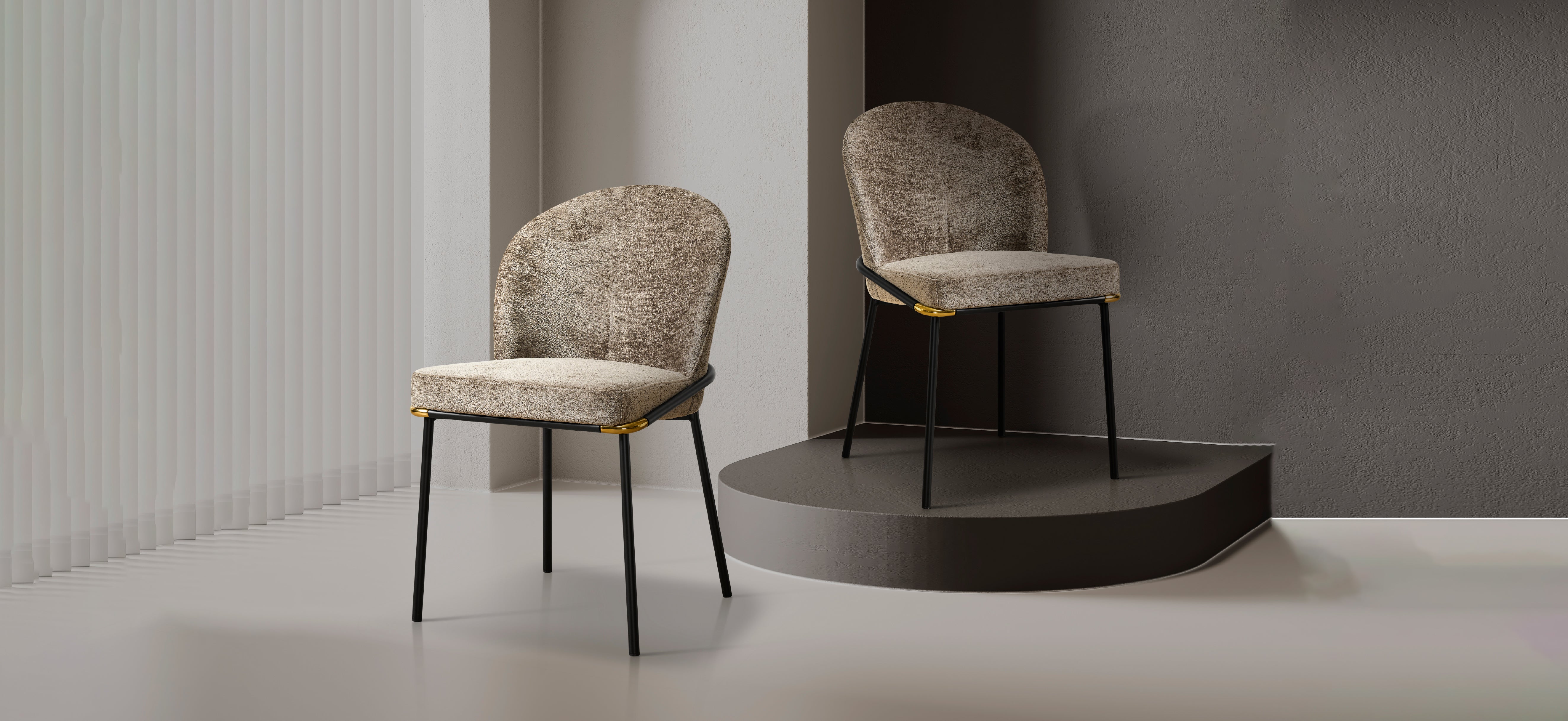 Cooper Boucle Dining Chair – Plush Upholstery with Gold Details