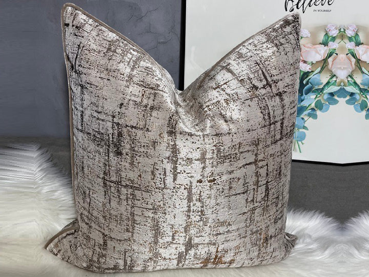 This Beige Brushed Designer Feather-Filled Cushion features a sophisticated brushed pattern in beige with subtle metallic highlights, adding an elegant touch to your home. Crafted from premium jacquard fabric, this cushion is filled with 1600g of washed natural white duck feathers, ensuring luxurious comfort and durability. The clean piped edges provide a refined finish, making it an ideal choice for both modern and traditional interiors.