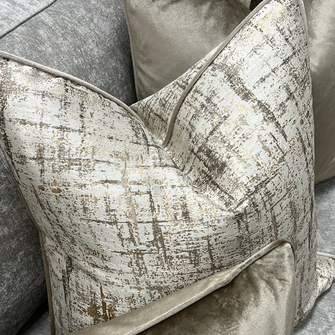 Beige Brushstroke Textured Feather FiIled Cushions
