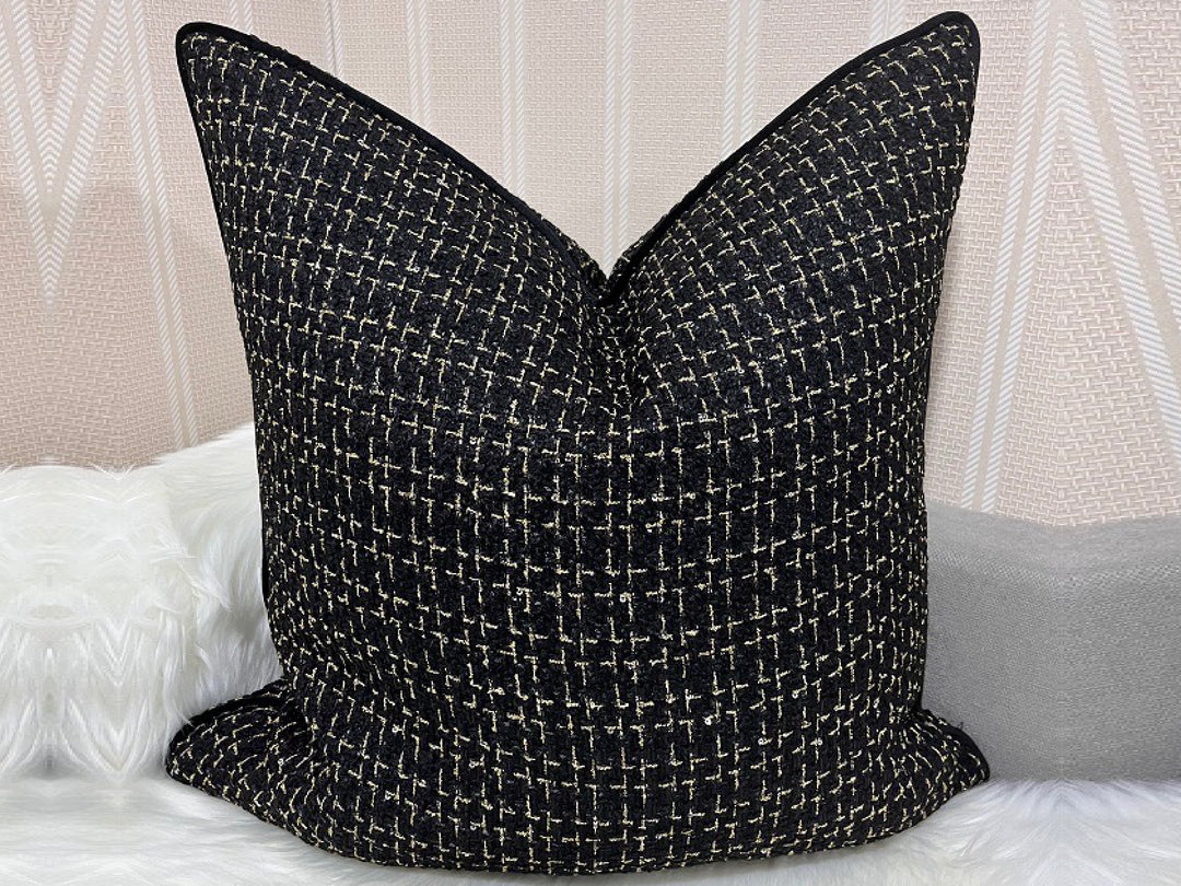 This Tweed Noir Feather-Filled Cushion brings a touch of modern sophistication to your home. Made from high-grade tweed fabric with a striking black and beige woven design, this cushion is filled with 1600g of washed natural white duck feathers for luxurious comfort. The bold pattern and elegant piped edges make it a standout addition to any room.