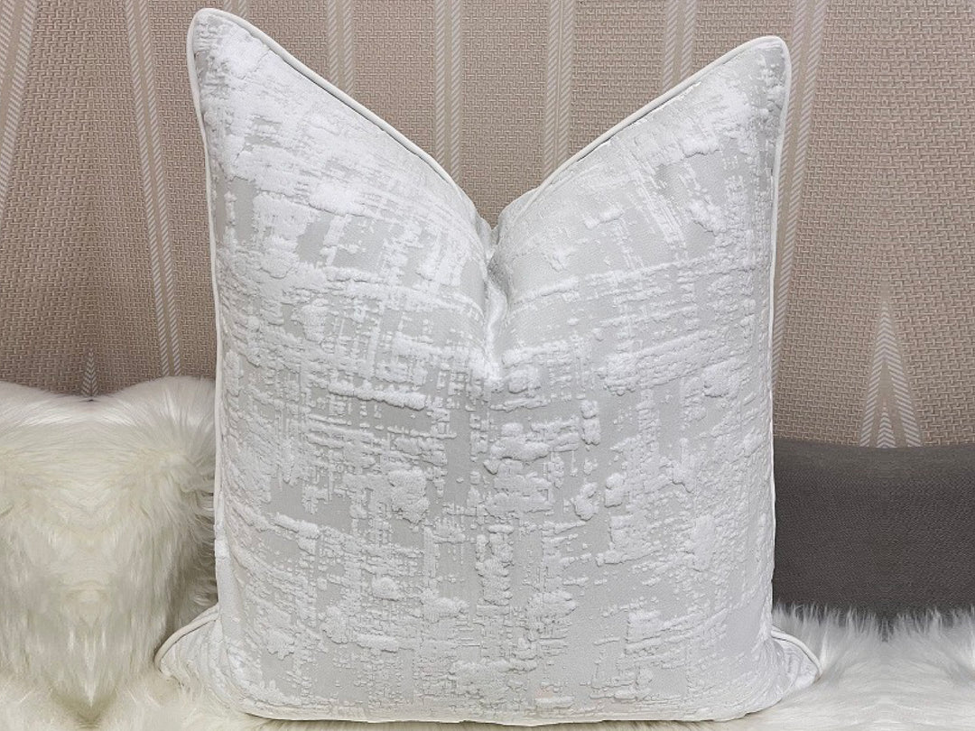 This White Textured Designer Feather-Filled Throw Pillow features a soft white fabric with a subtle, sophisticated textured design that adds elegance to any space. Made from premium jacquard fabric, this cushion is filled with 1600g of washed natural white duck feathers, ensuring both comfort and long-lasting durability. The clean piped edges provide a polished and refined finish, making it an ideal accent for modern or classic interiors. Perfect as an outdoor pillow for patios or a cozy throw pillow for your living room.