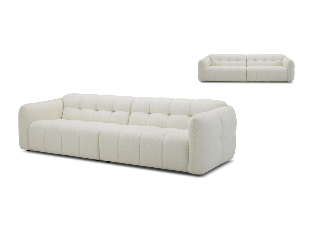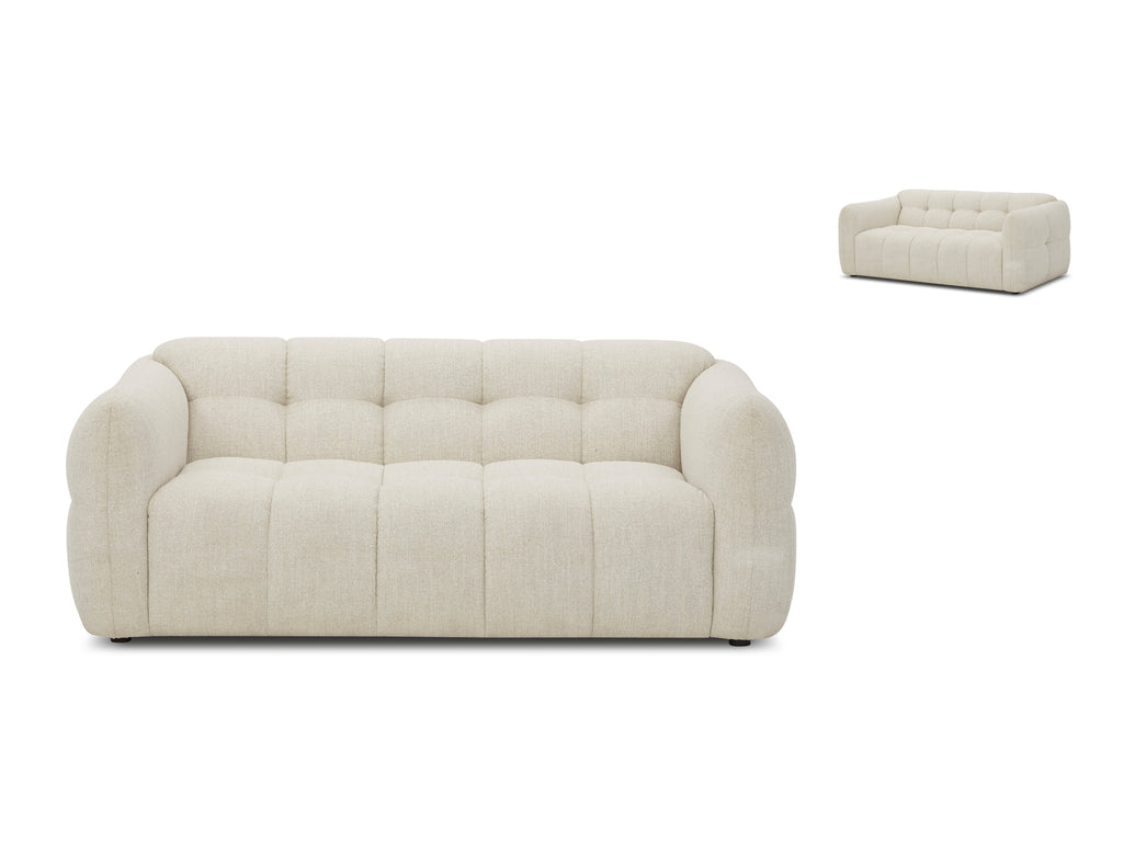 The Olavia Ottoman features a structured, square profile with bold vertical panel tufting for added texture and definition. Its cushioned top is filled with high-density foam and polyester fibre, offering a firm yet comfortable surface. It functions well as a footrest, extra seat, or informal coffee table when paired with a tray. The vertical tufted detailing adds visual depth while maintaining a modern look. Built on a solid wood frame with #EFEBEB plastic legs, it’s available in a range of custom fabric and colour options.