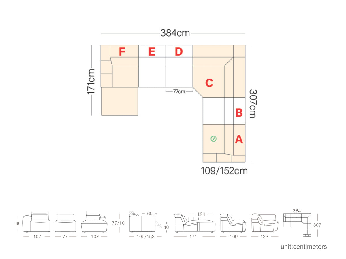 The Arizona Leather Corner Lounge combines modern comfort with advanced features in a low-profile design. Perfect for contemporary homes, it includes zero clearance electric recliners with adjustable headrests for a personalized lounging experience. Enjoy built-in entertainment with the integrated Bluetooth sound system. For added convenience, an optional storage console is available with a wireless charging pad. The lounge can also be customized with a chaise on either side and additional armless seat to suit your space and lifestyle.