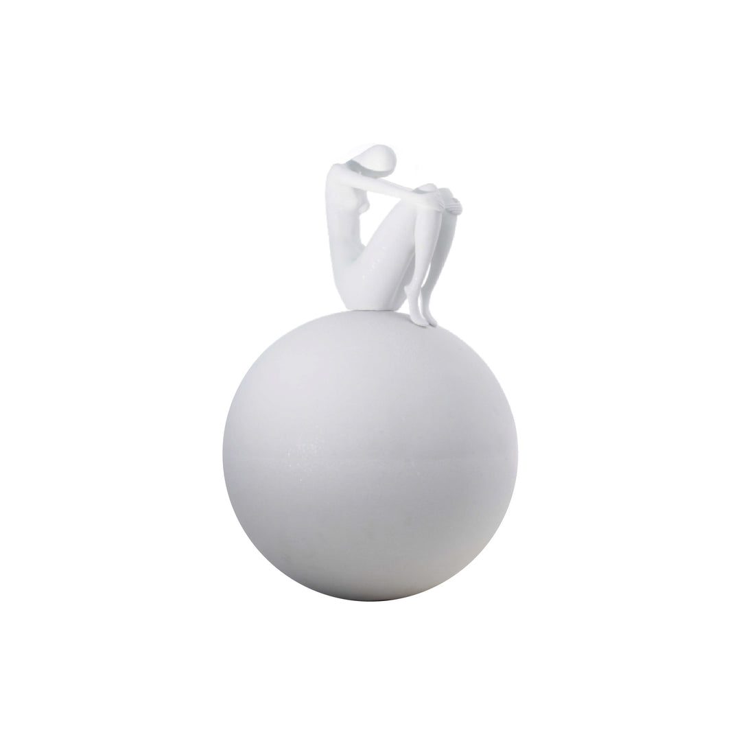 The Lonely Lady Sculpture showcases modern art with a graceful and feminine allure, making it a striking addition to any decor. This sculpture depicts a human figurine sitting on a large, smooth spherical object. Its clean design and emotional expression complement modern furniture, making it a perfect fit for hallway tables, coffee tables, and sideboard cabinets.