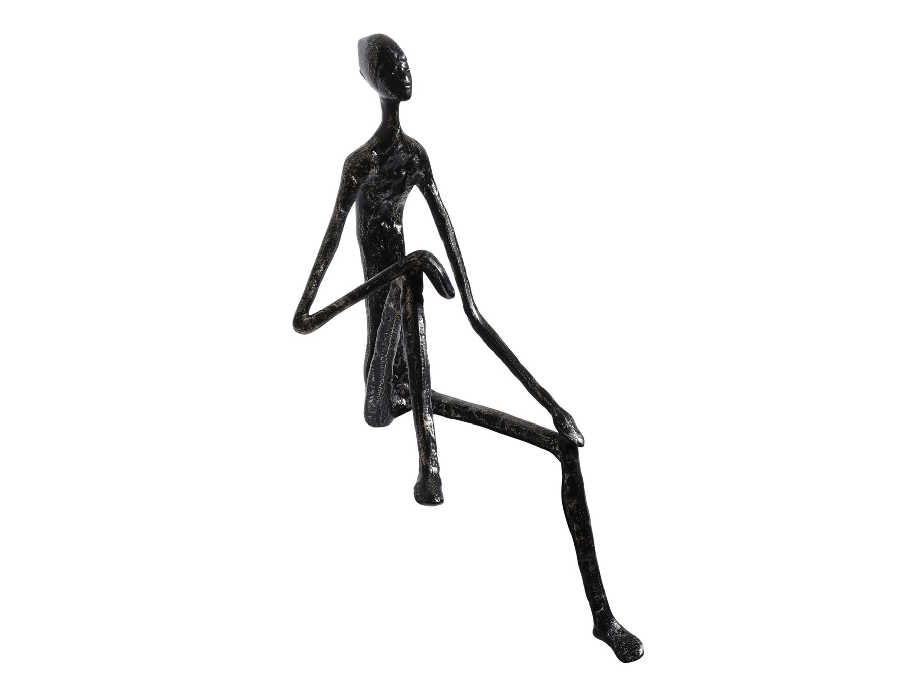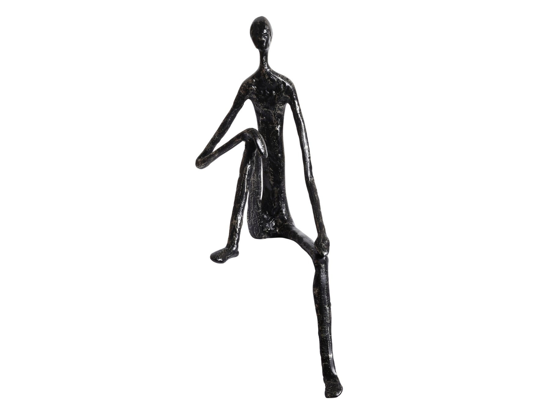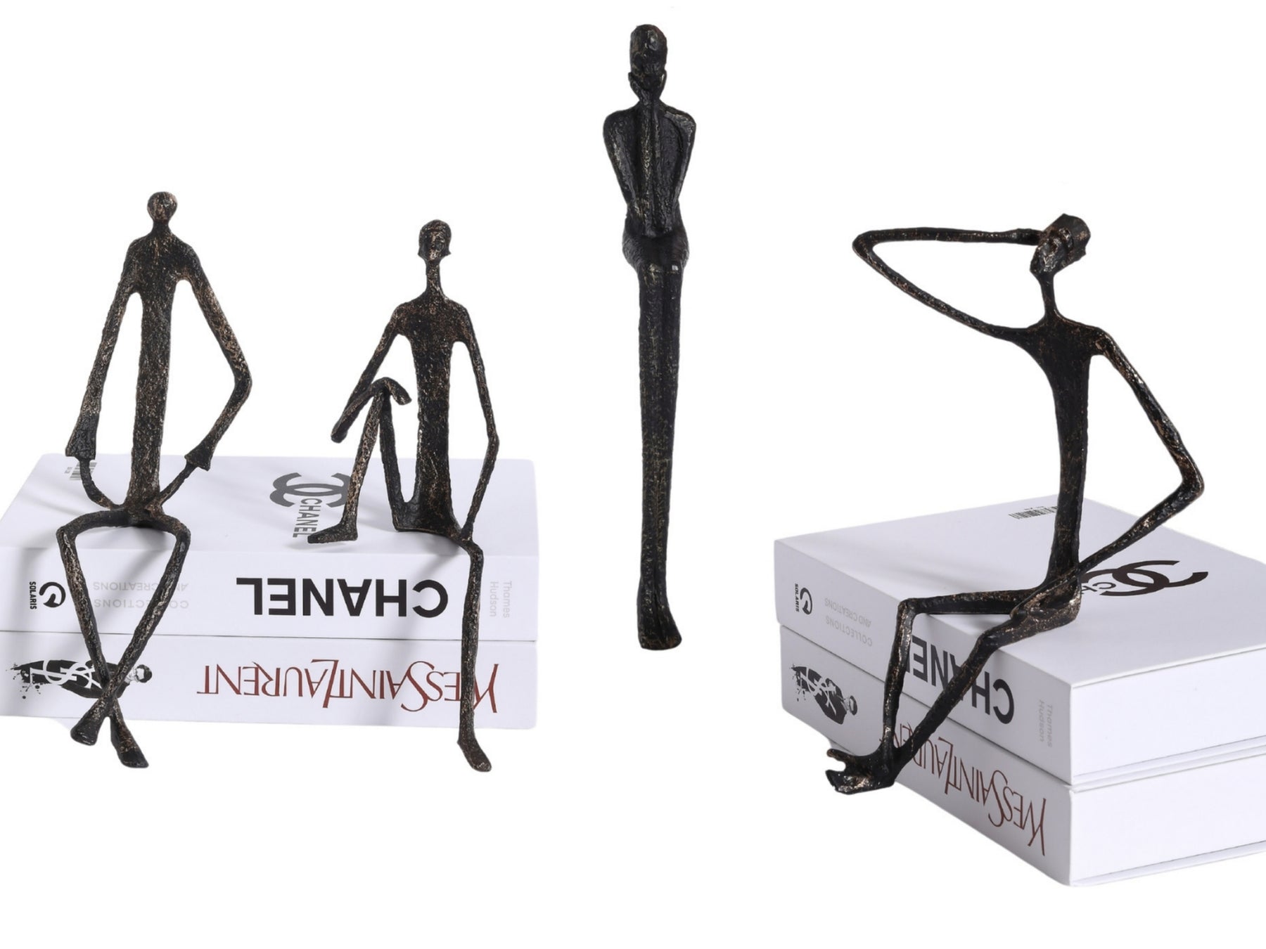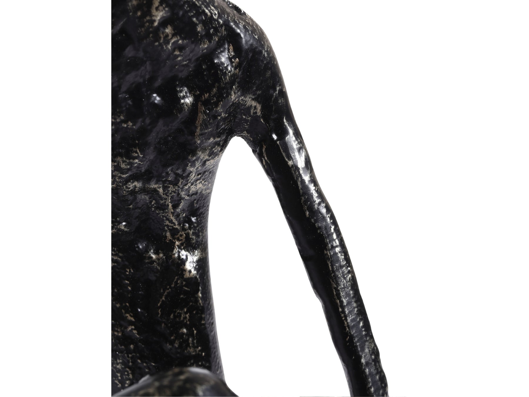 A slim, modern figure designed in black and gold tones, this minimalist metal sculpture adds a quiet decorative touch to shelves, consoles, and sideboards. Its elongated shape and relaxed sitting pose make it an easy piece to style in living rooms, studies, or hallways. Lightweight yet sturdy, it works well as a single accent or paired with other Nordic-inspired pieces for a cohesive look.