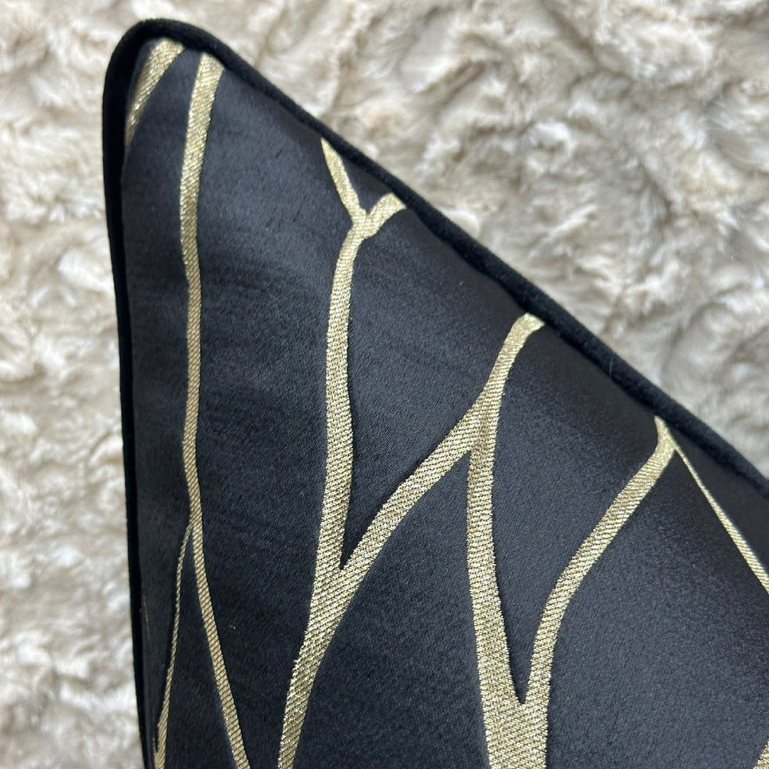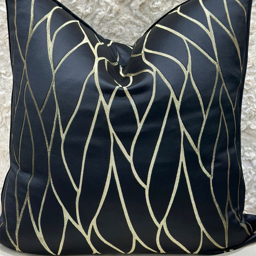 Black & Gold Geometric Pattern Feather-Filled Cushion