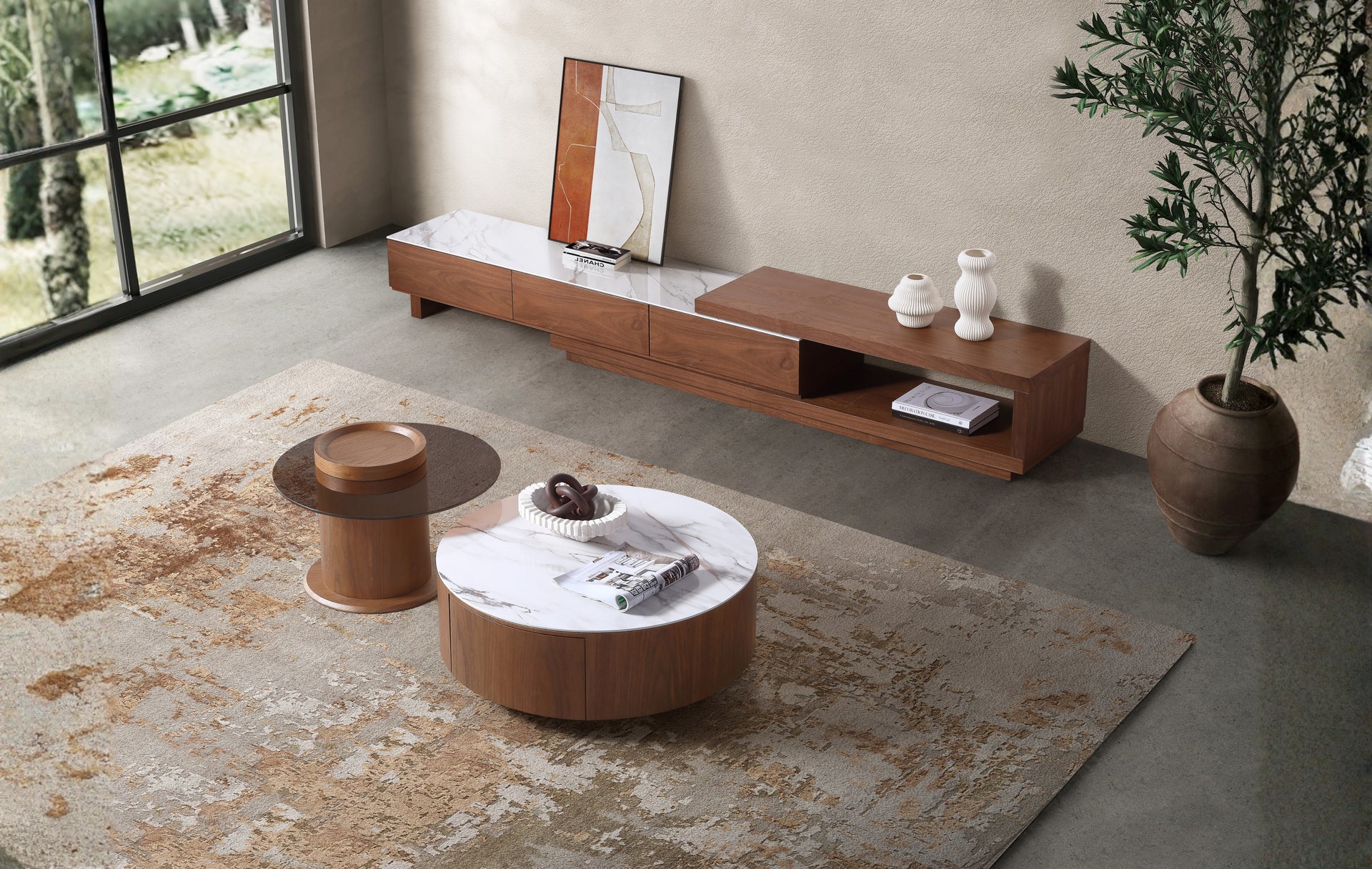 Bahamas Walnut & White Sintered Stone Extendable TV Unit