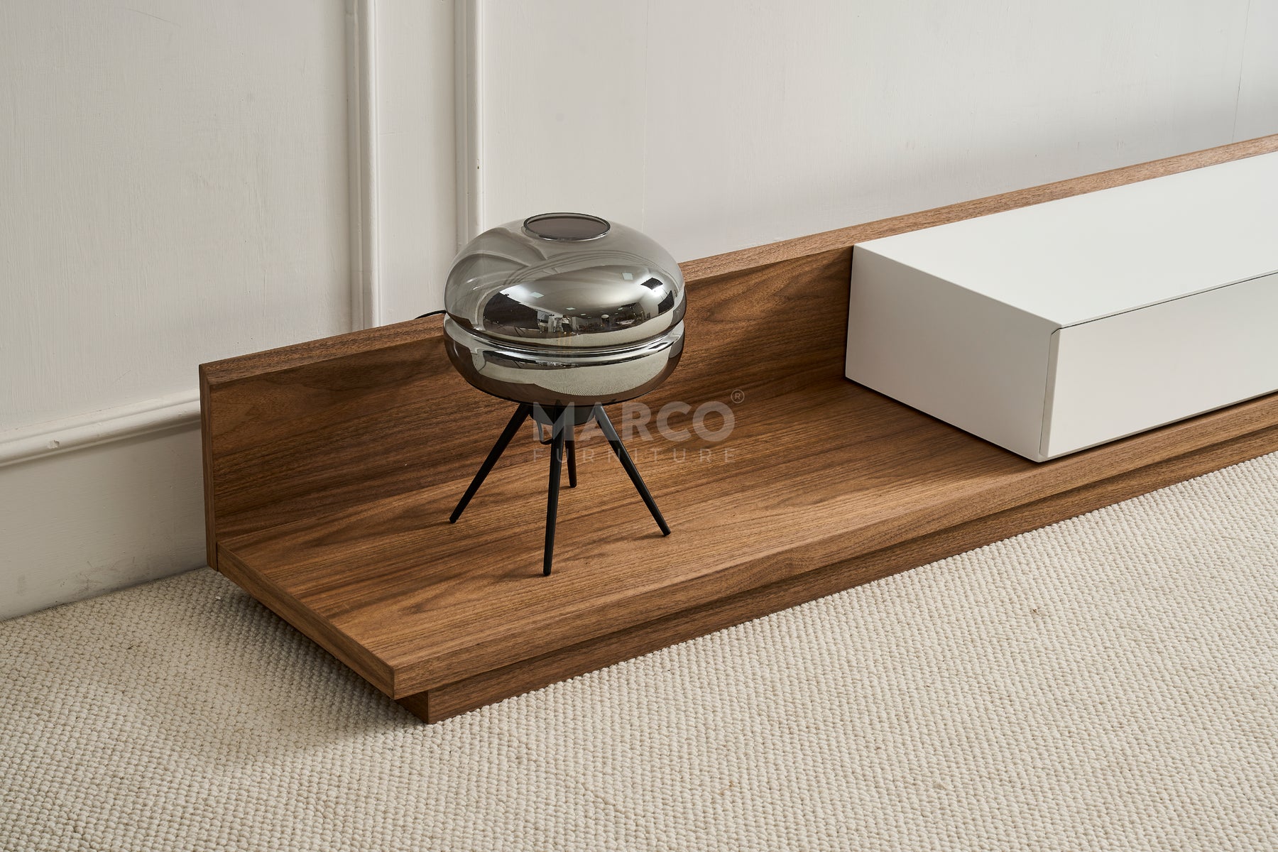 - Materials: Crafted from high density fiberboard (HDF) with eco-friendly solid walnut veneer finish.