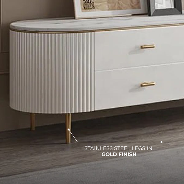 Doyle Ceramic Top TV Unit with Steel Gold Legs and Drawers