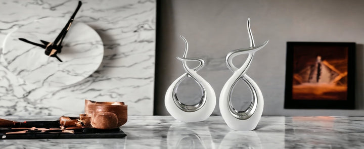 Ceramic Flame Sculpture White & Silver