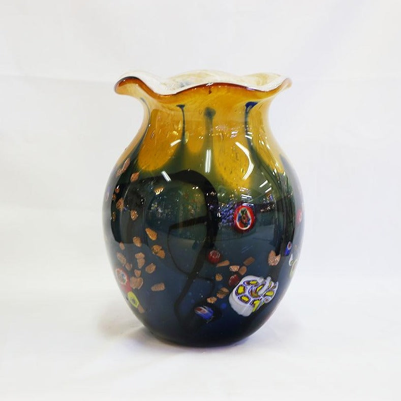 - Design: A colorful mosaic created by melting small pieces of murrine onto a hot plate, which are then incorporated into the molten glass to form the design.