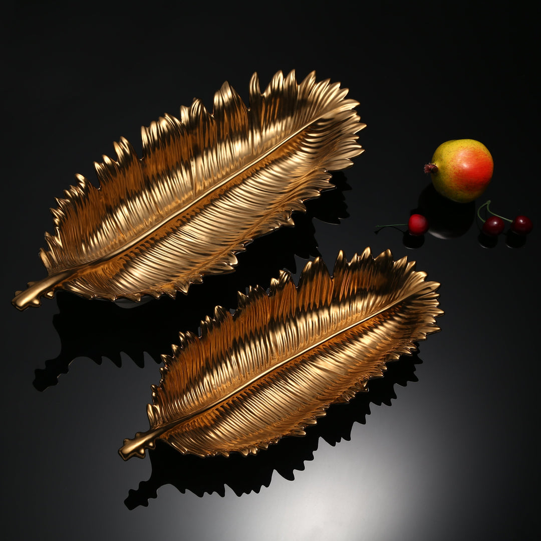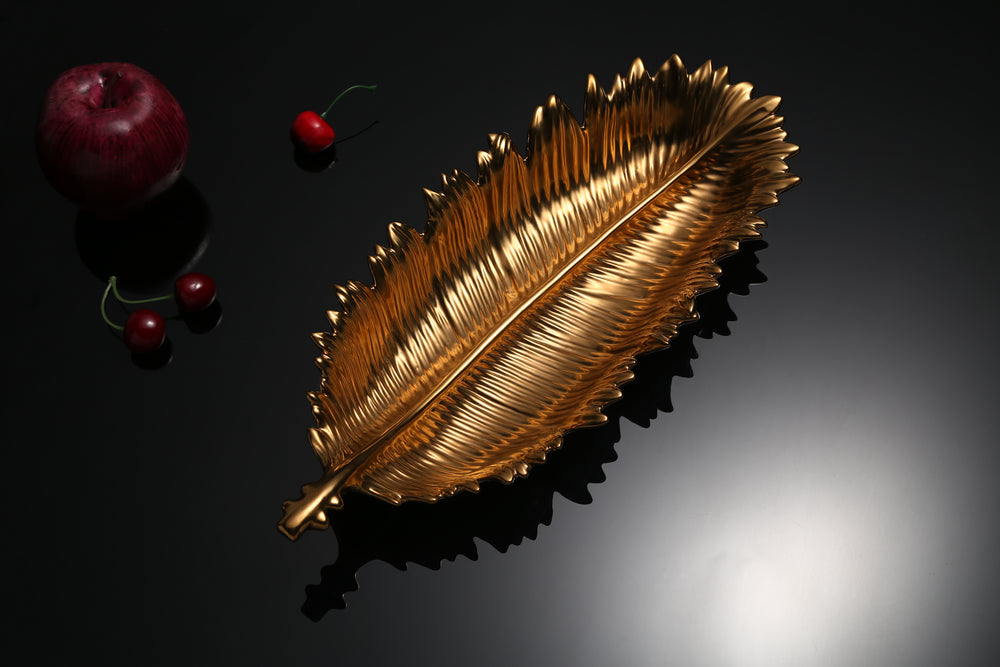 The Gold Pineapple Leaf Plate creates a stunning visual story for your home. It features a European-inspired leaf design with a reflective gold color. Crafted from high-quality glazed ceramic - whether placed on dining tables, coffee tables, or side tables, it creates an artsy display while keeping your essentials neatly arranged.