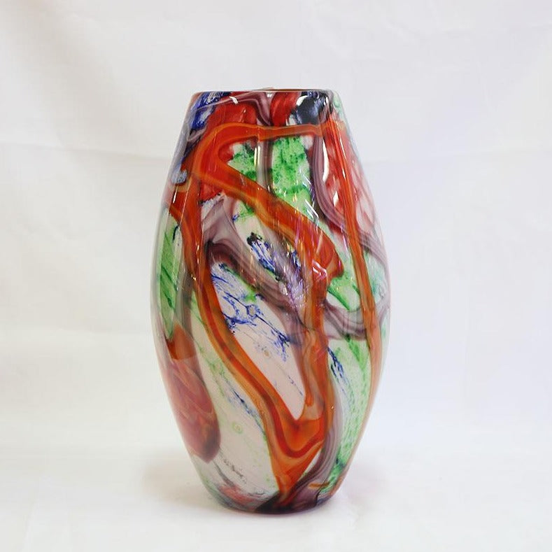 • Design: A colorful mosaic created by melting small pieces of murrine onto a hot plate, which are then incorporated into the molten glass to form the design.