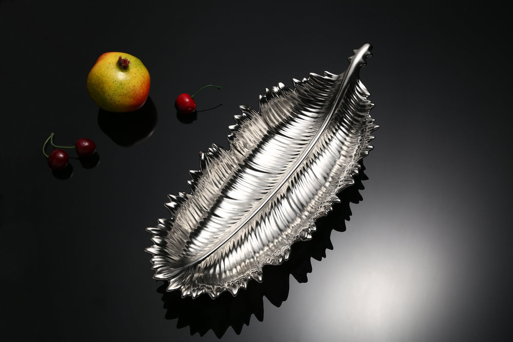 The Silver Pineapple Leaf Plate creates a stunning visual story for your home. It features a European-inspired leaf design with a reflective silver color. Crafted from high-quality glazed ceramic - whether placed on dining tables, coffee tables, or side tables, it creates an artsy display while keeping your essentials neatly arranged.