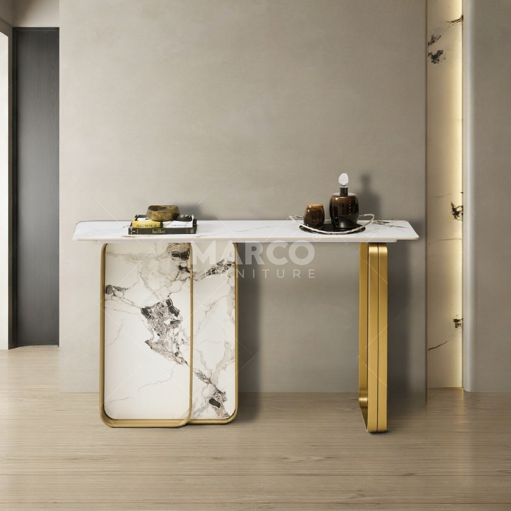 Marco Furniture’s Vittoria Collection is a mix of high-end design and everyday function. Drenched in luxe gold tones and crafted with striking sintered stone tops, each piece - from hallway table to dining table - makes a high-end impact without feeling overdone. Perfect for those who crave a refined yet contemporary aesthetic.