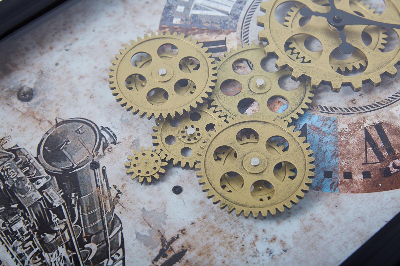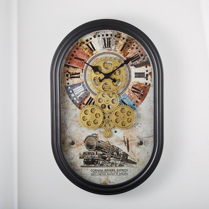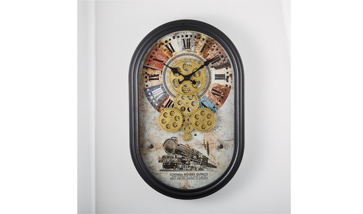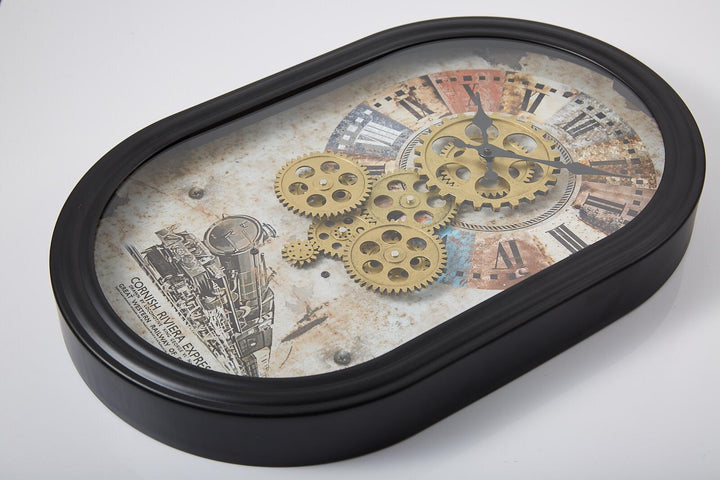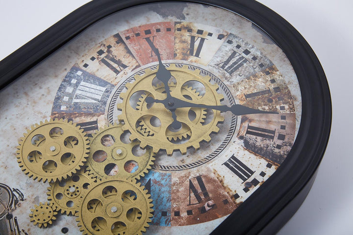 Vintage Roman Numeral Moving Gears Metal Wall Clock 27cm