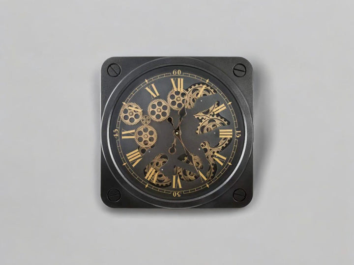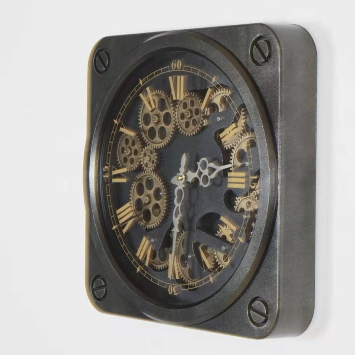 Vintage Moving Cogs Square Wall Clock (50 cm)